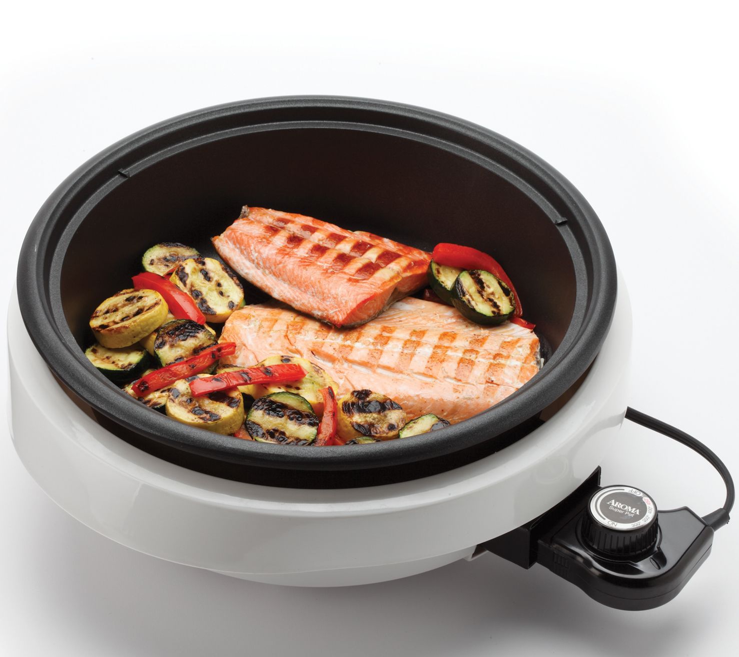 It's a grill. It's a slow cooker. It's a food steamer. It's the Grillet! The Aroma Grillet 3-in-1 Indoor Grill is the hero of home cooking with its ridged grill surface and slow cooking pot for roasts, chili, fondue, soups, and more! From Aroma.