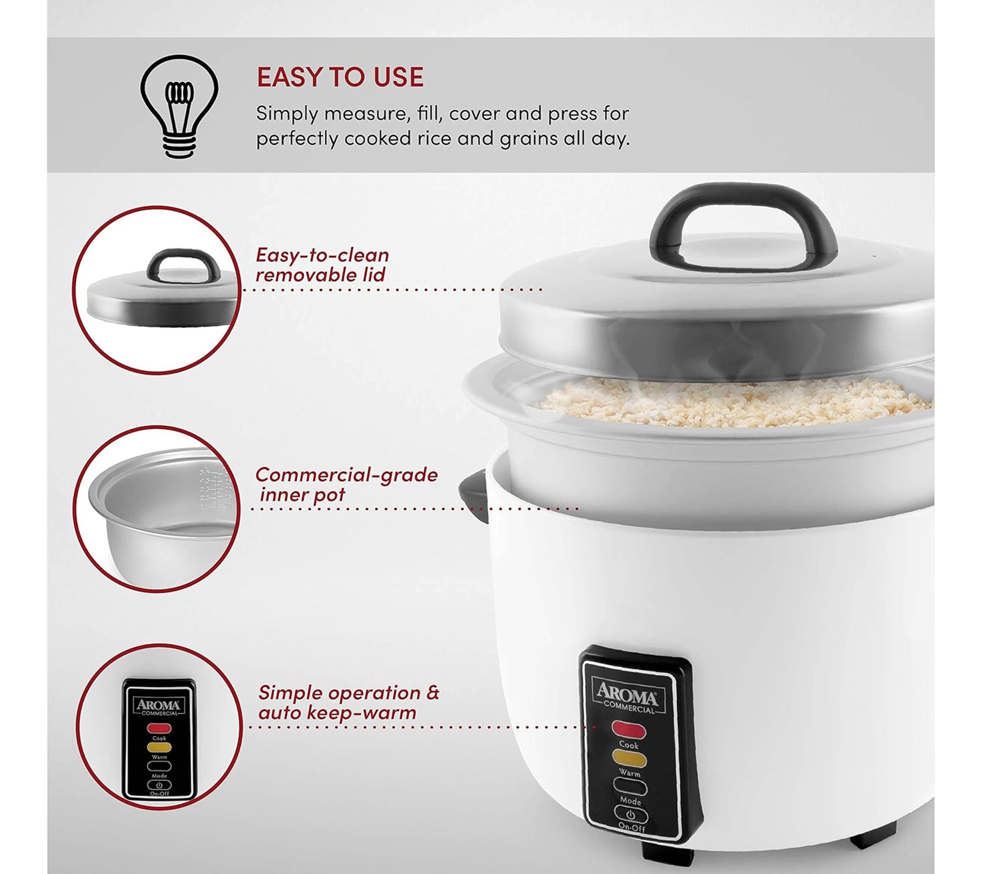 Need to feed an army? Make batch after batch of fluffy rice in this commercial rice cooker. From Aroma.