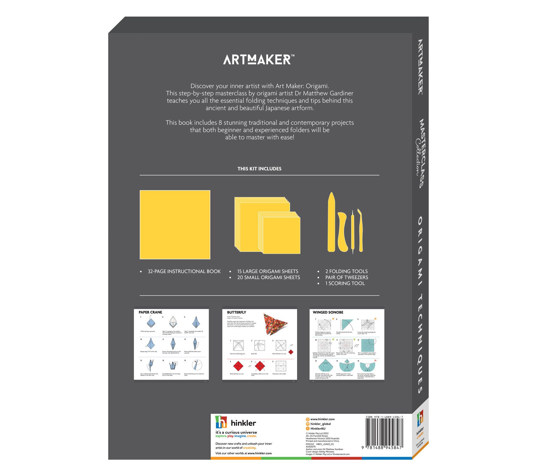 Indulge in the timeless art of origami with this masterclass kit, guided by Dr. Matthew Gardiner's easy-to-follow instructions. With patterned paper and specialized tools included, crafting intricate designs becomes a relaxing, creative escape for hobbyists and curious minds alike. From Art Maker.