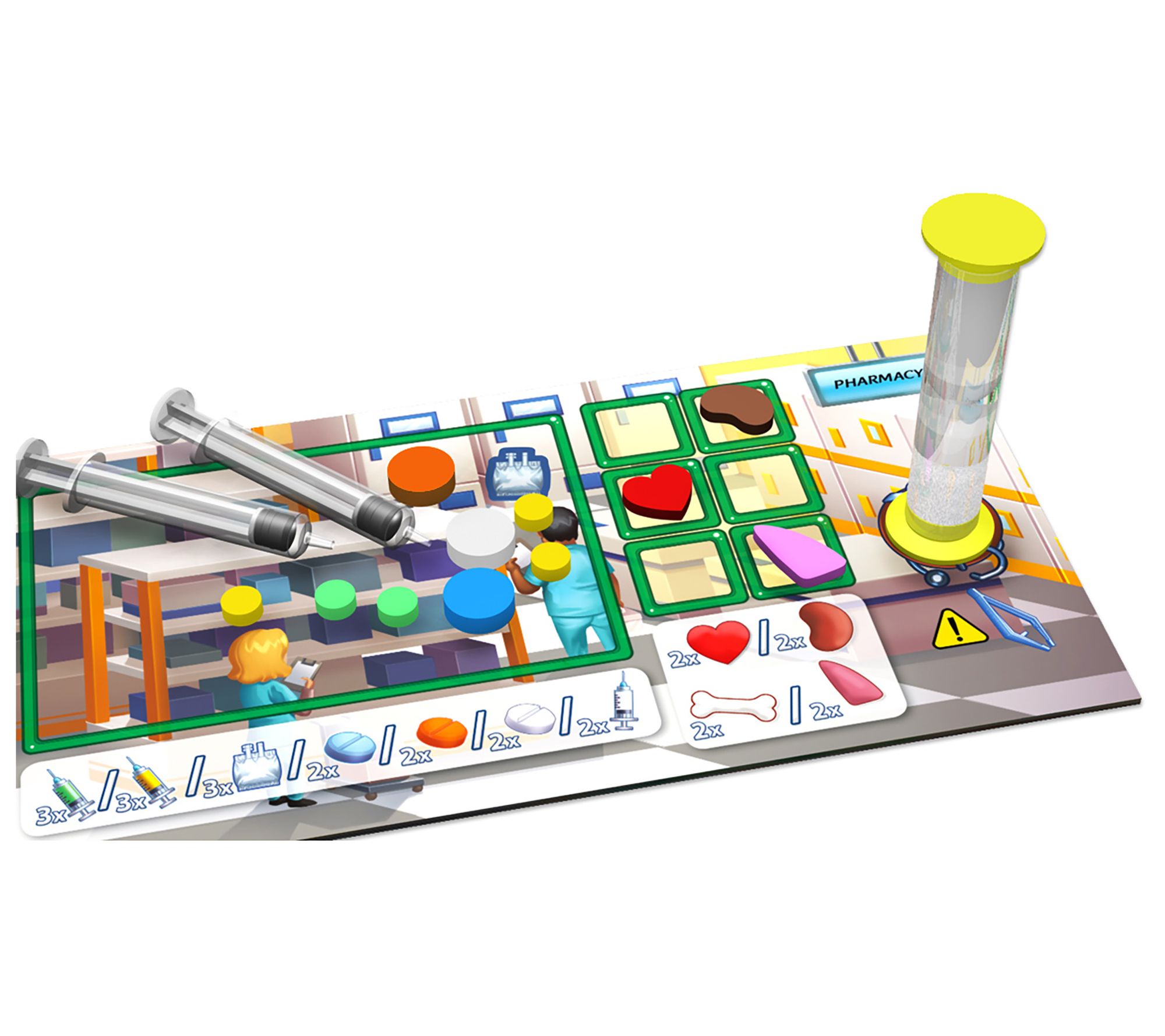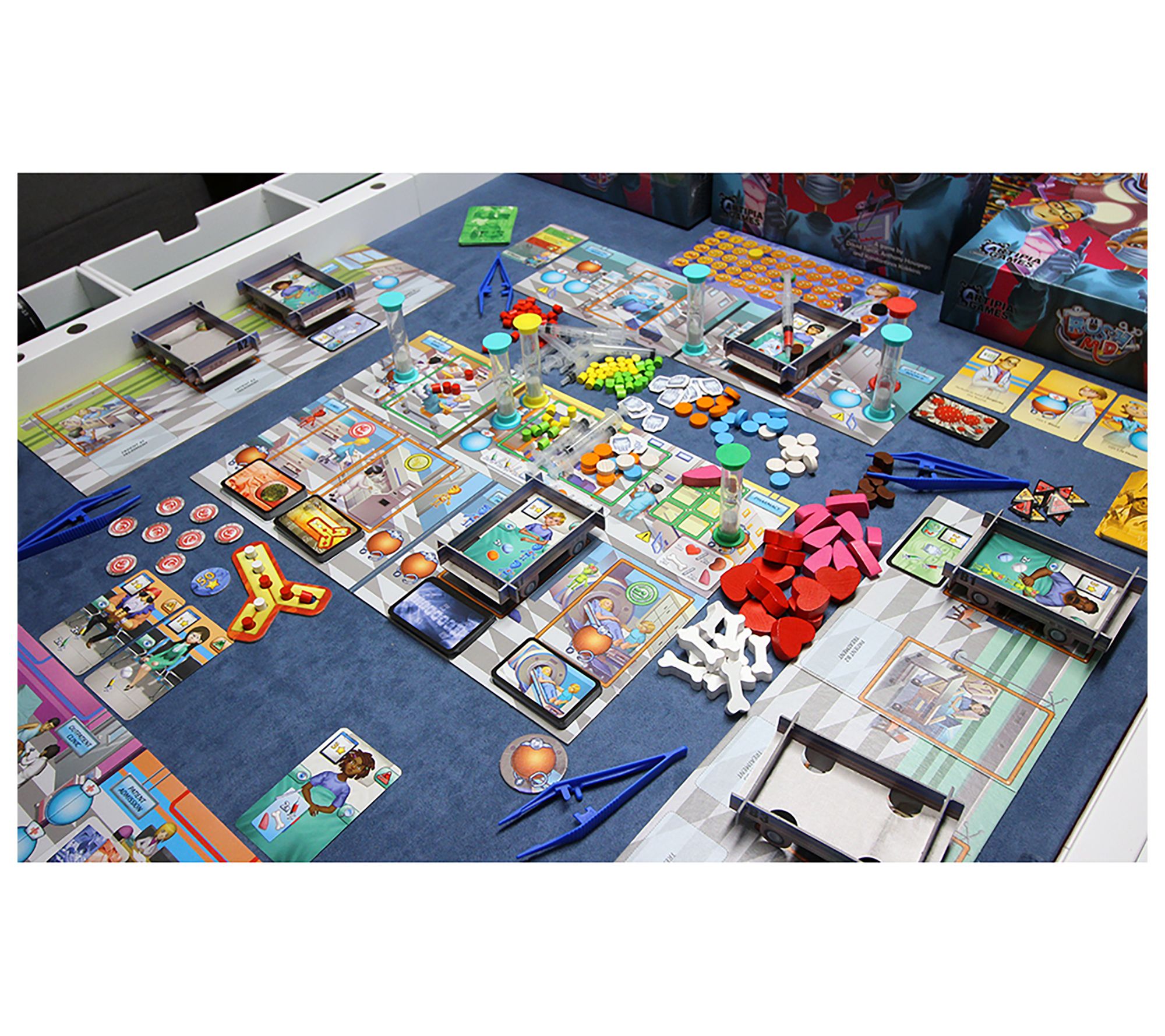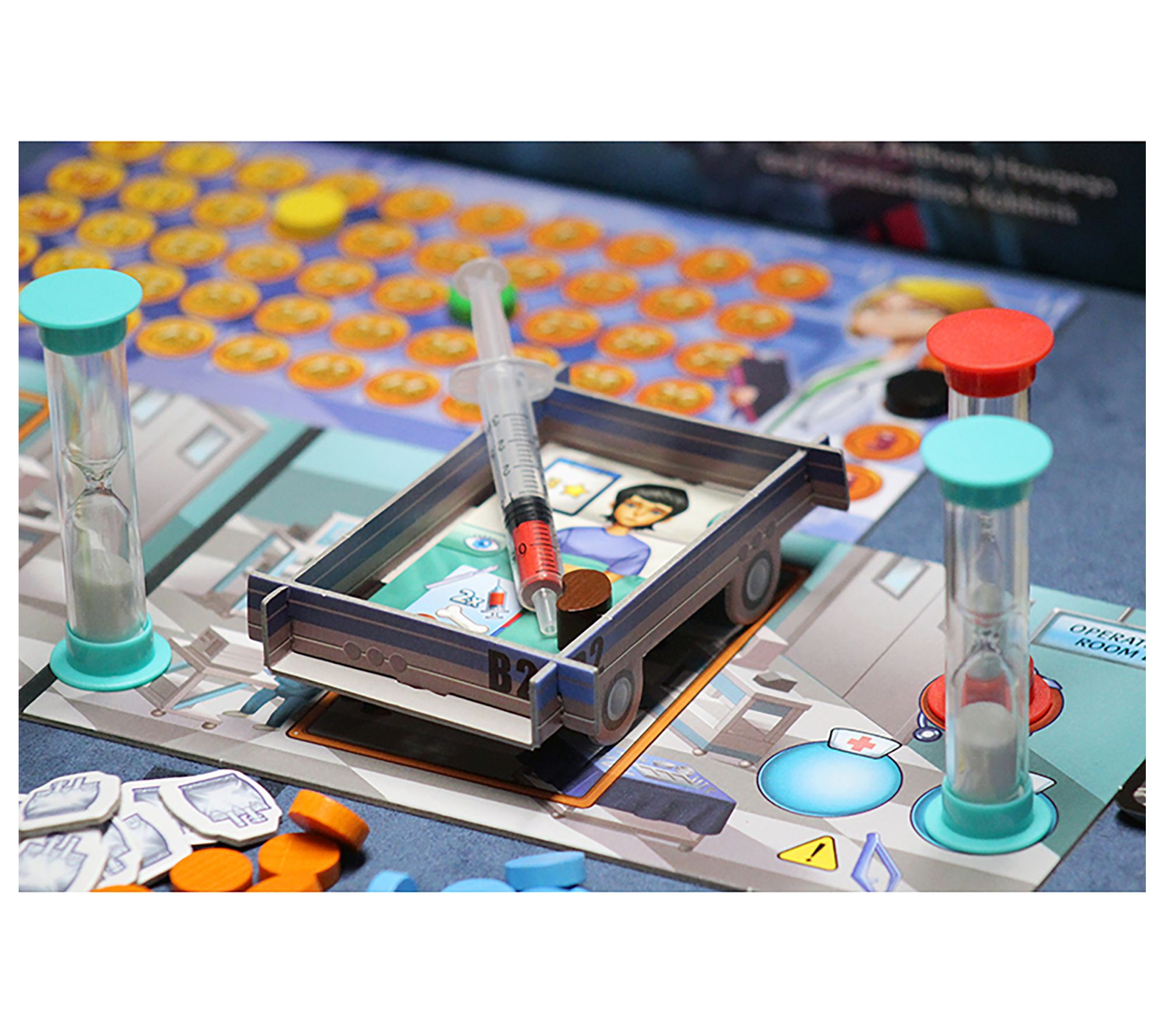 • Includes six boards, scoreboard, 36 hospitalized patients, 220 cards, 174 wooden tokens, 35 cardboard tokens, eight hourglasses, four tweezers, 12 plastic syringes, and rulebook