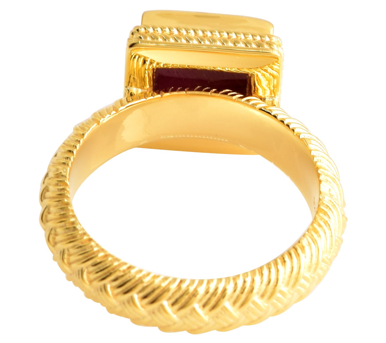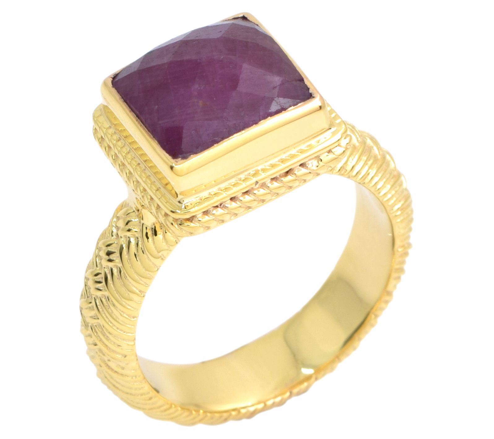 Show off your fashion-forward sense of style with the eye-catching look of this Italian ruby ring. A textured setting and square-cut stone combine to turn heads wherever you go. From Artisan Crafted.