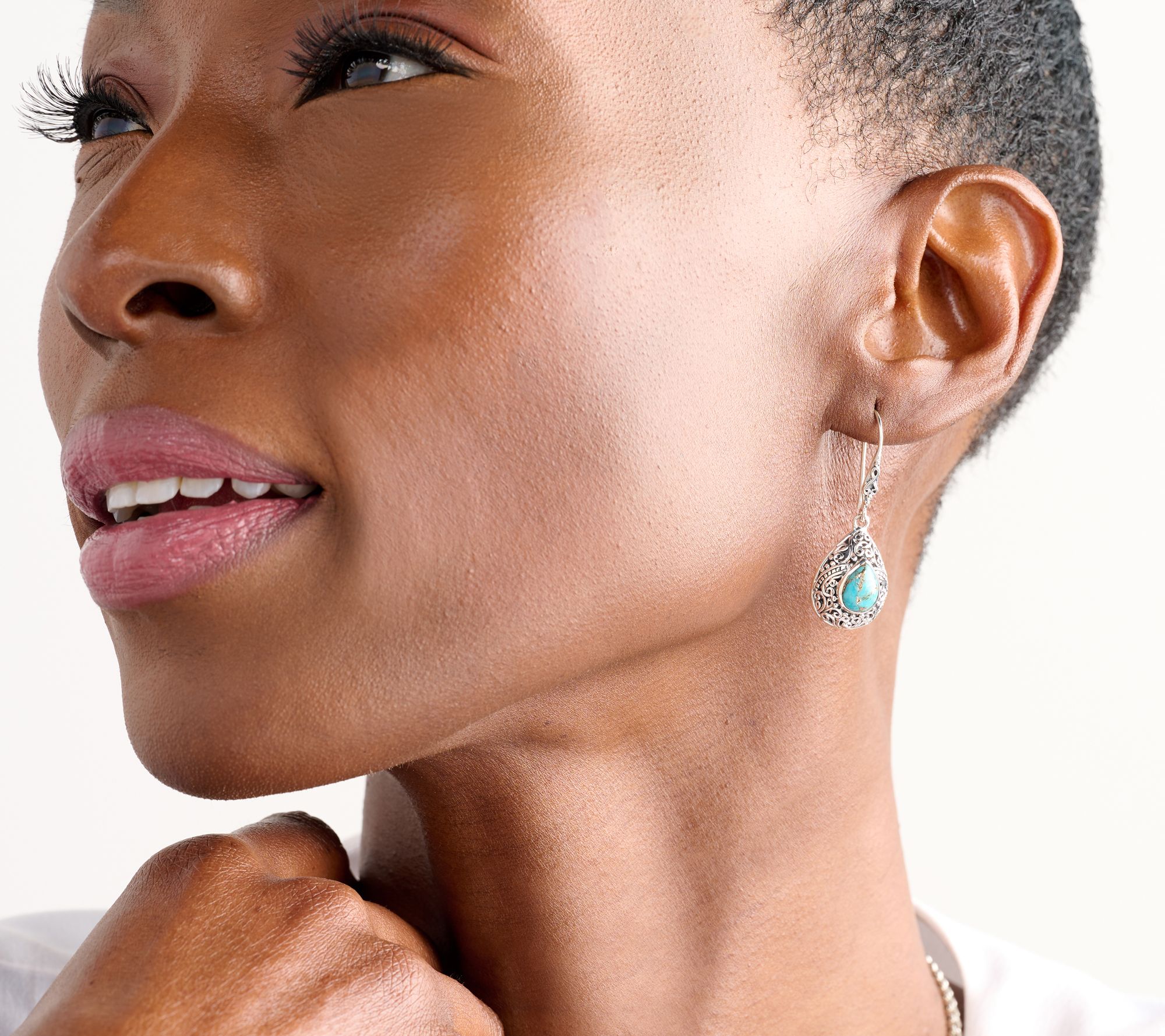Dazzle onlookers when you're wearing these stunning drop earrings, featuring beautiful turquoise surrounded by intricate scrollwork details. From Artisan Crafted by Robert Manse.