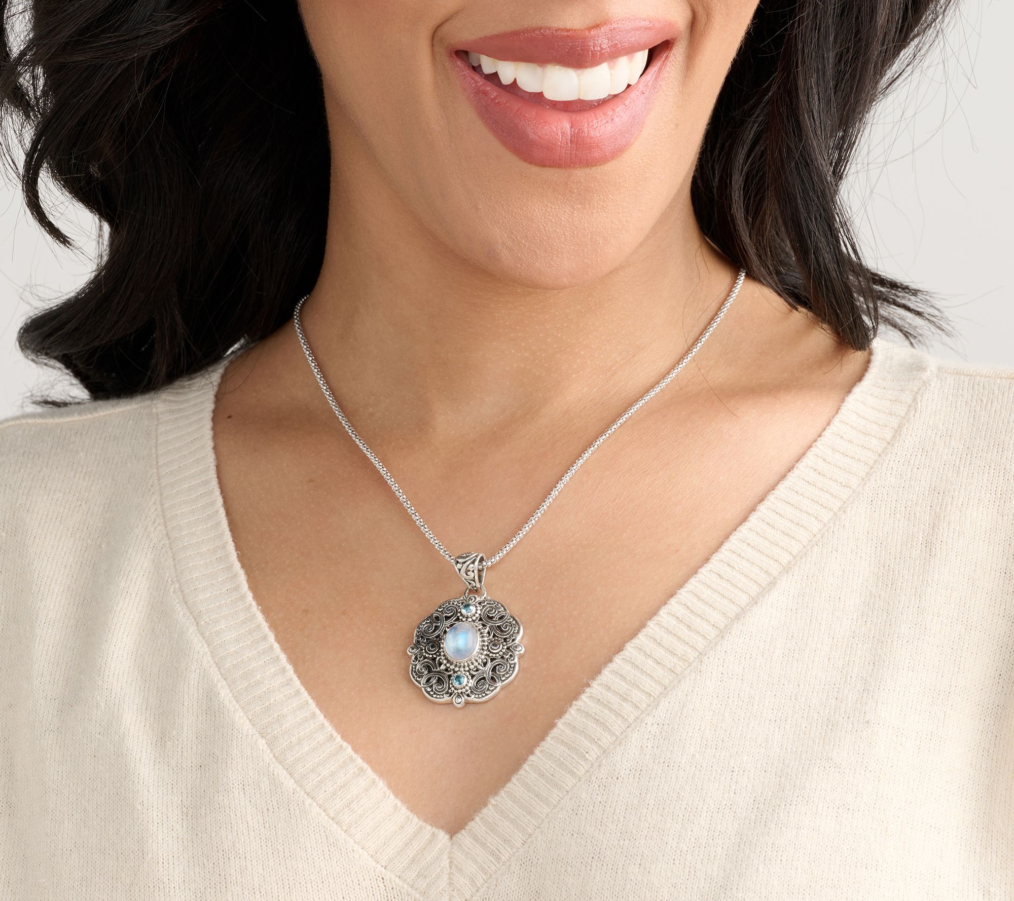 You've got a sophisticated sense of style and it shows every time you wear this chain necklace bedecked with a moonstone and blue topaz sterling silver pendant. From Artisan Crafted by Robert Manse.