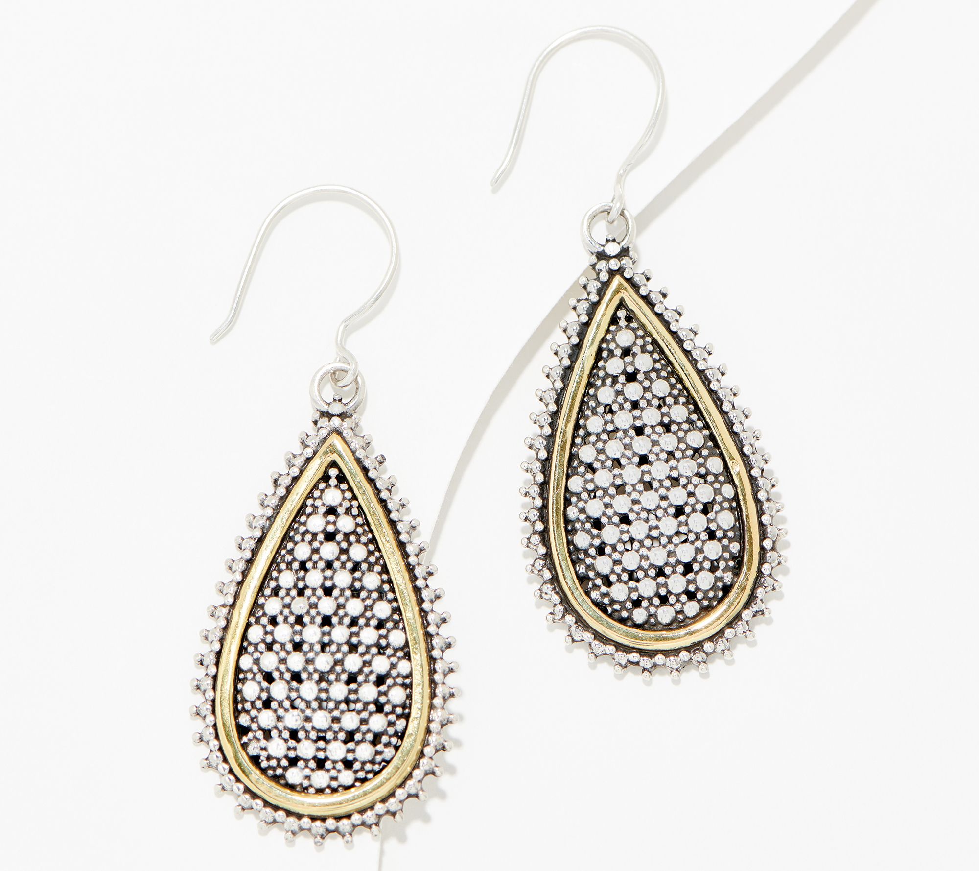 Artisan Crafted by Robert Manse SS & 18K Pear Shape Caviar Bead Earrings