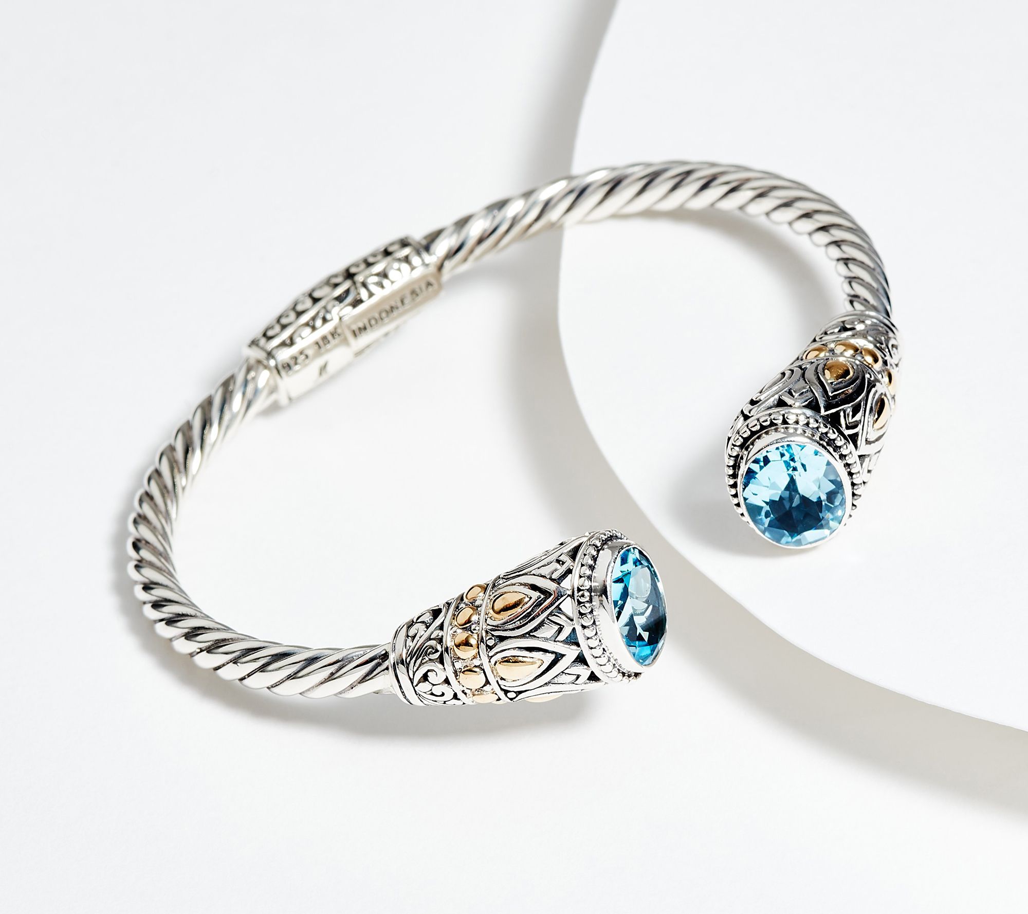 Artisan Crafted Gemstone Cable Hinged Cuff, Sterling Silver