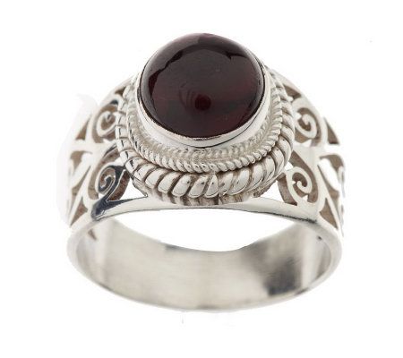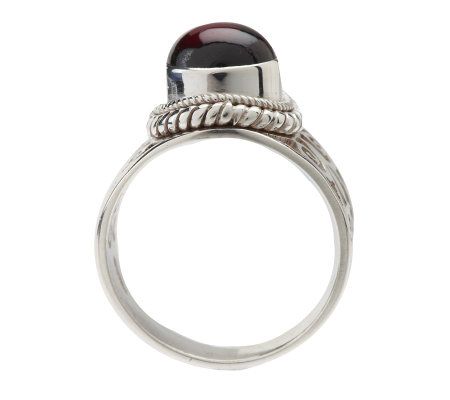 Simply stunning. When drama is what you're looking for, slip on this handcrafted sterling silver ring. A bold round gemstone cabochon at the center is framed by a beaded and rope border. Openwork swirl designs add an exotic elegance, and a tapered shank completes the lovely look.