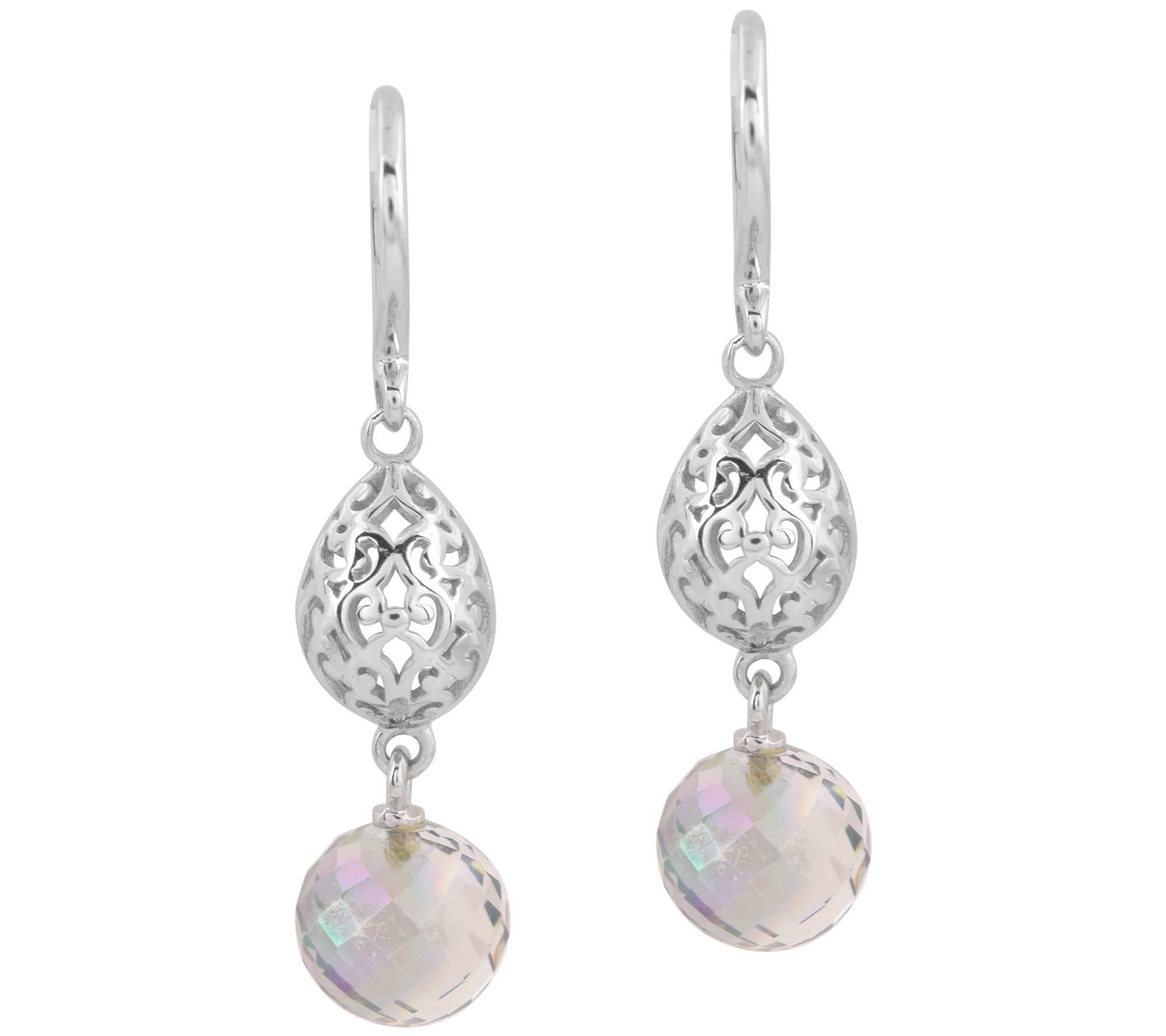 Restyle your look with these ornately detailed earrings that descend to end in faceted quartz beads. From Artisan Crafted.