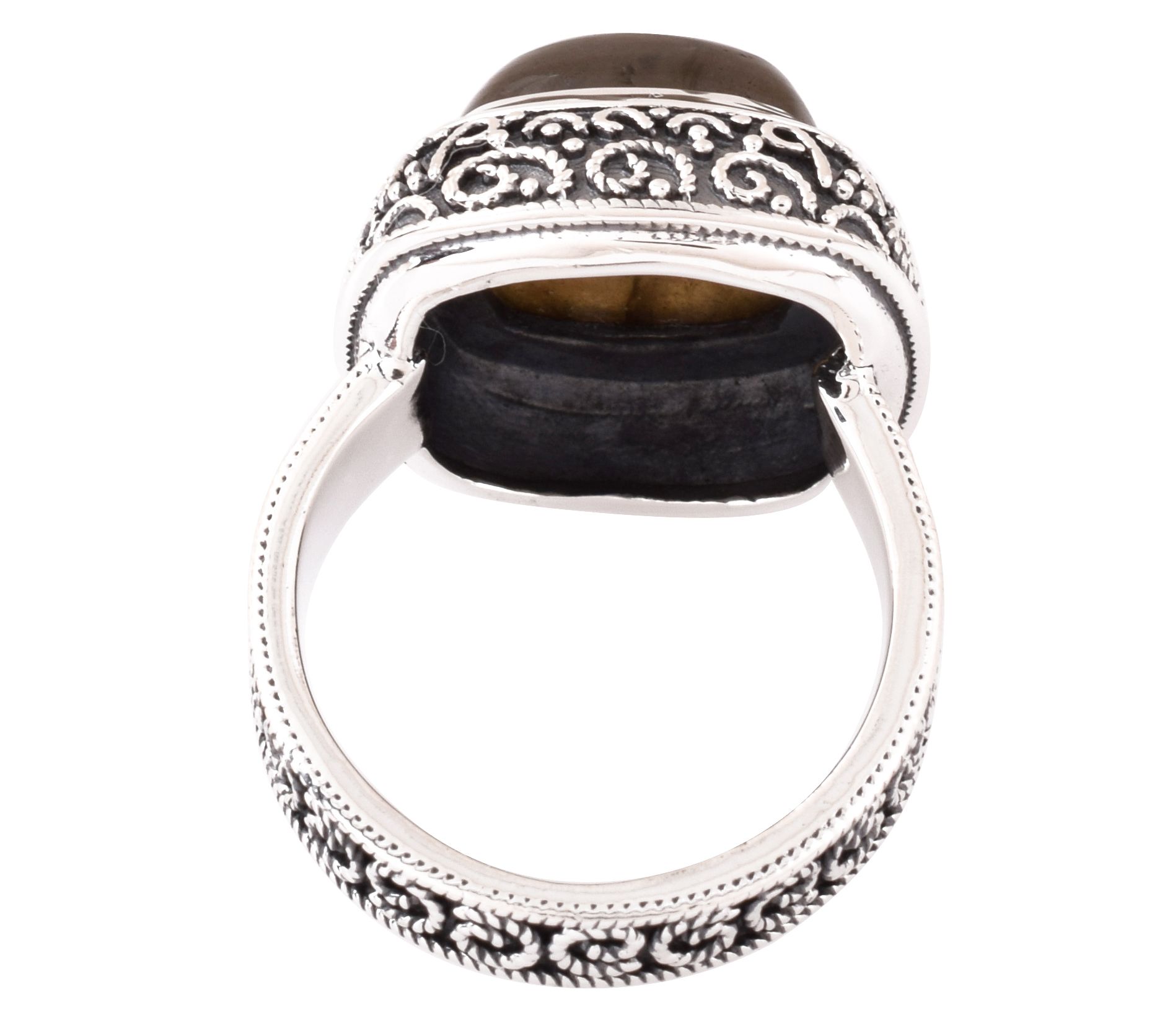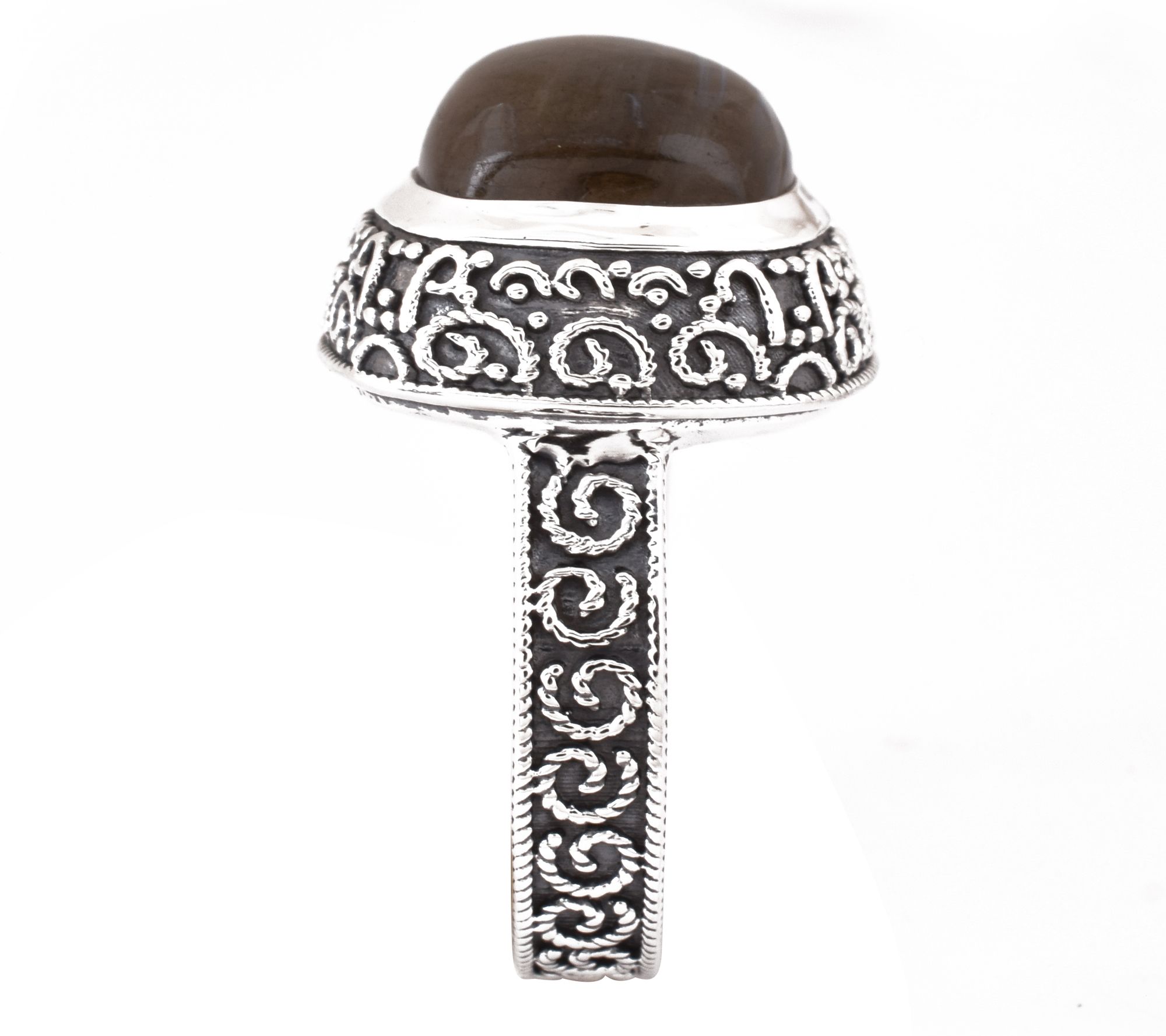 With subtle flashes of color and an intricate swirl design, this sterling silver labradorite ring is a head-turning addition to your jewelry collection. From Artisan Crafted.