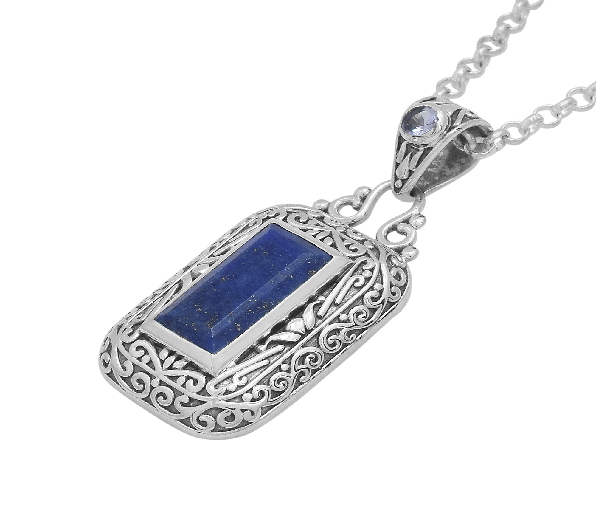 Artisan Crafted Sterling Lapis & Tanzanite Pendant w/ Chain