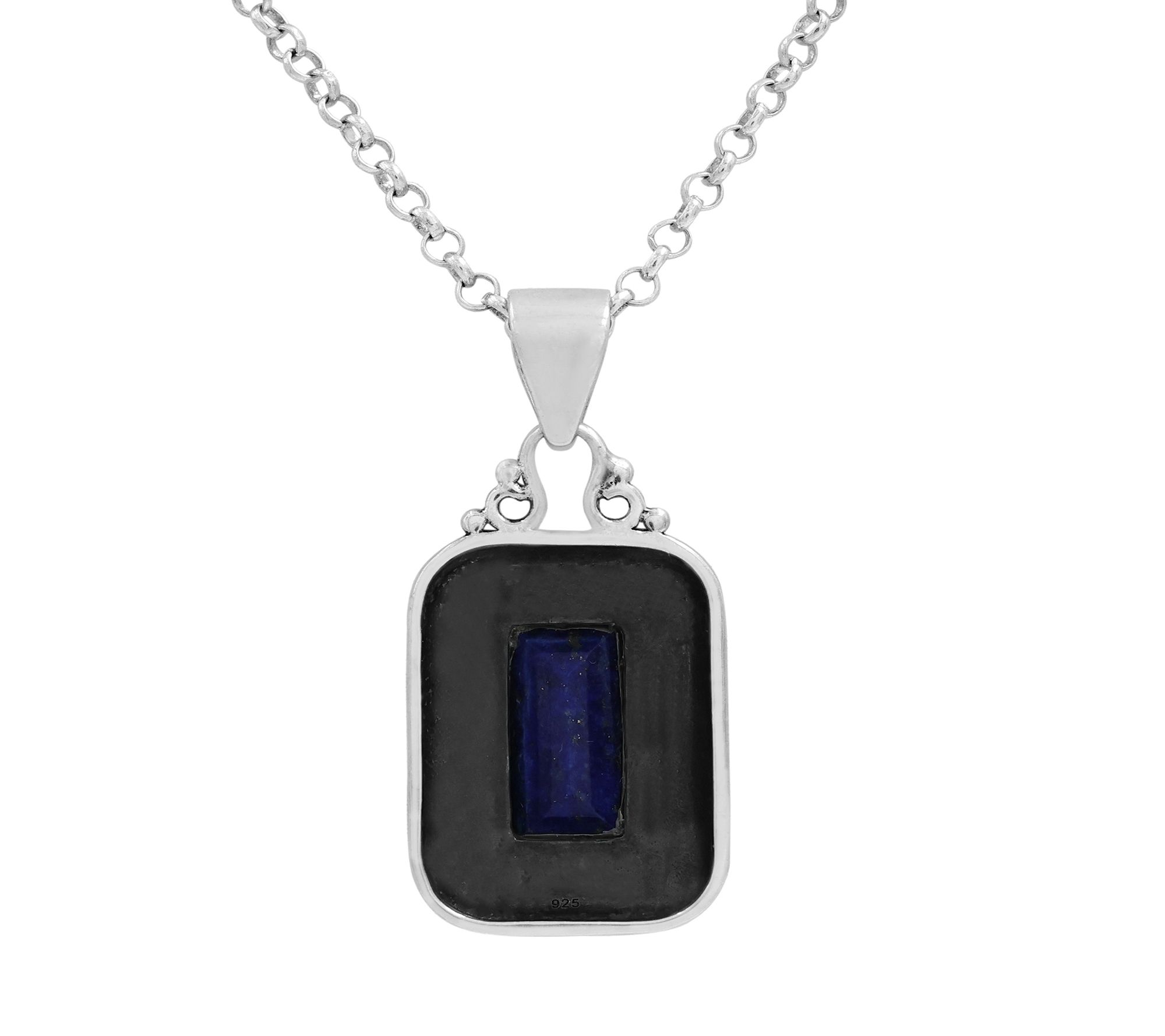 Add a dash of bold color to any outfit with this sterling silver pendant necklace, featuring a baguette-cut lapis lazuli and round-cut tanzanite accents. The vivid blues catch the light beautifully, making it a charming choice for weekend brunches or evening get-togethers. Slide on this necklace for an instant touch of sophistication.