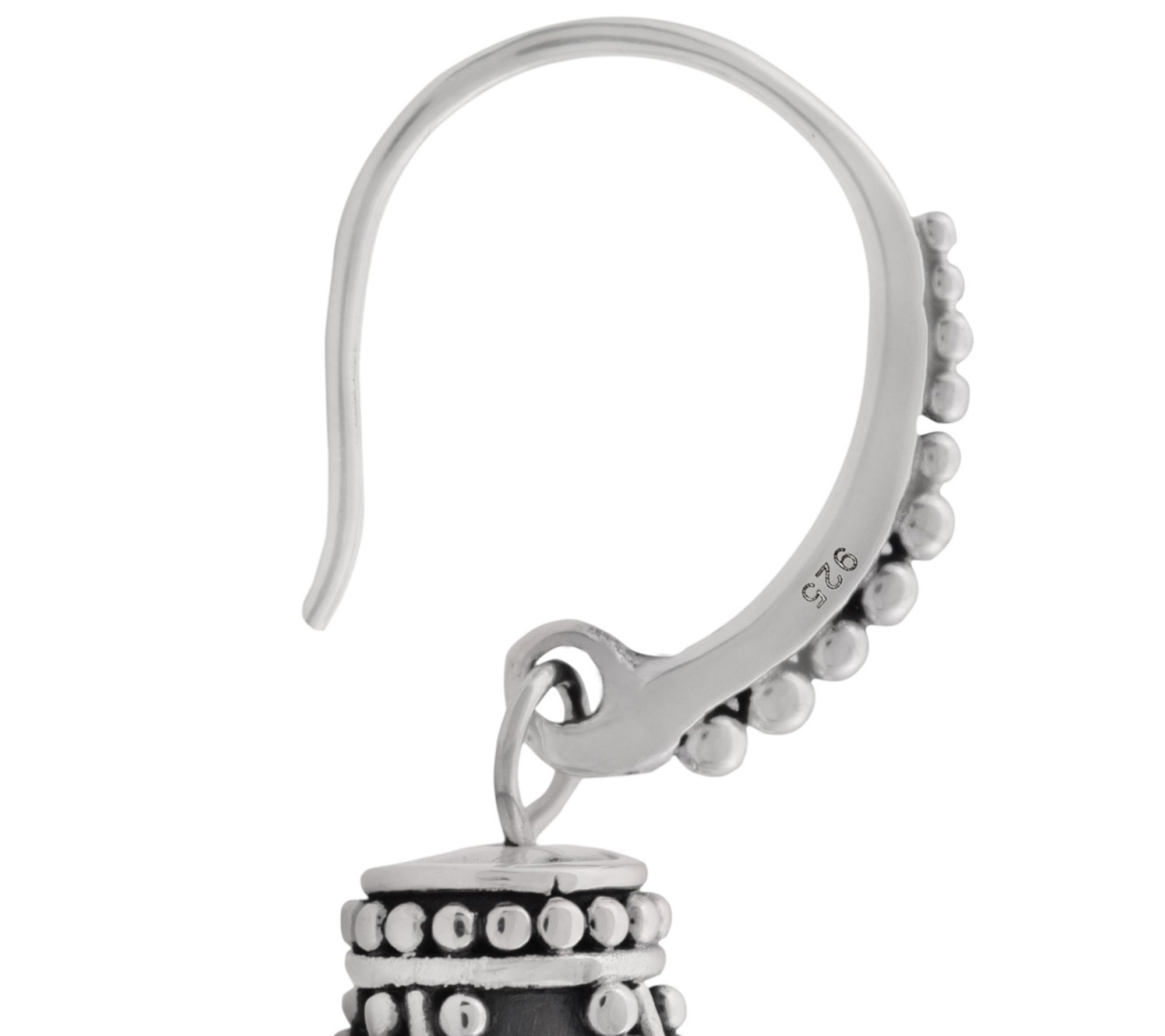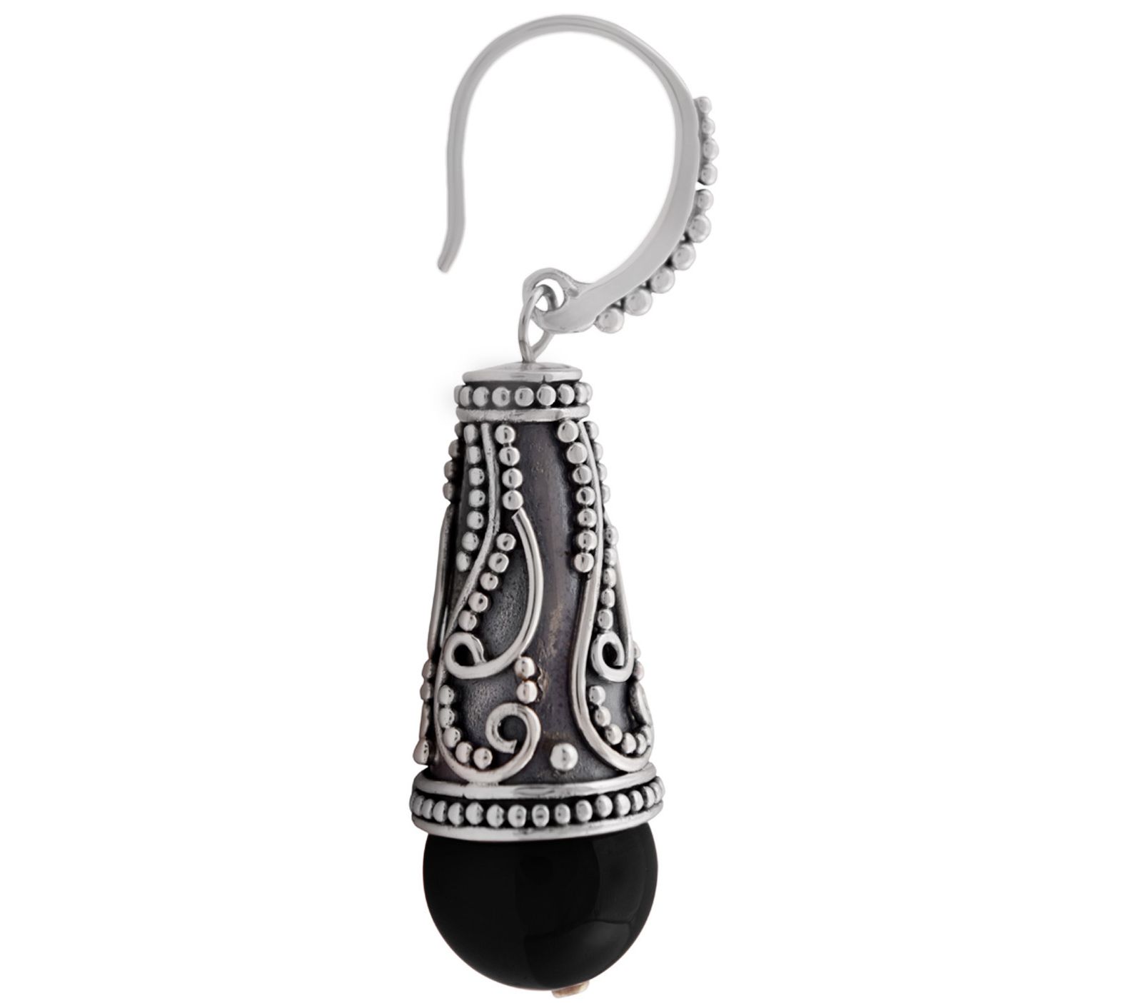 Elegantly crafted with a distinctly artisan feel, these sterling silver earrings are punctuated at the bottom by black onyx for an added mark of sophistication.