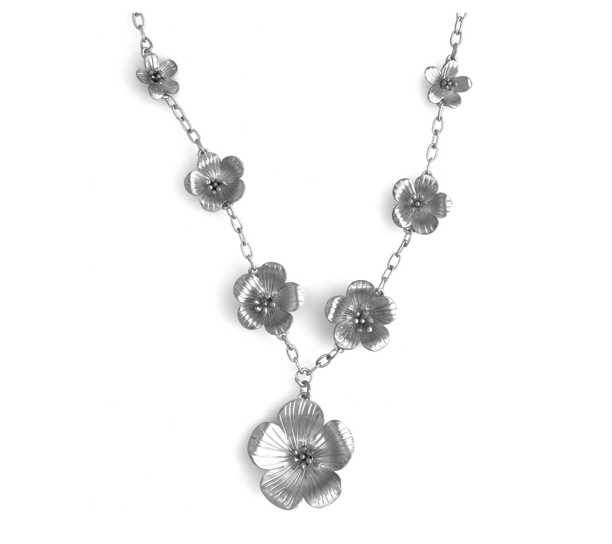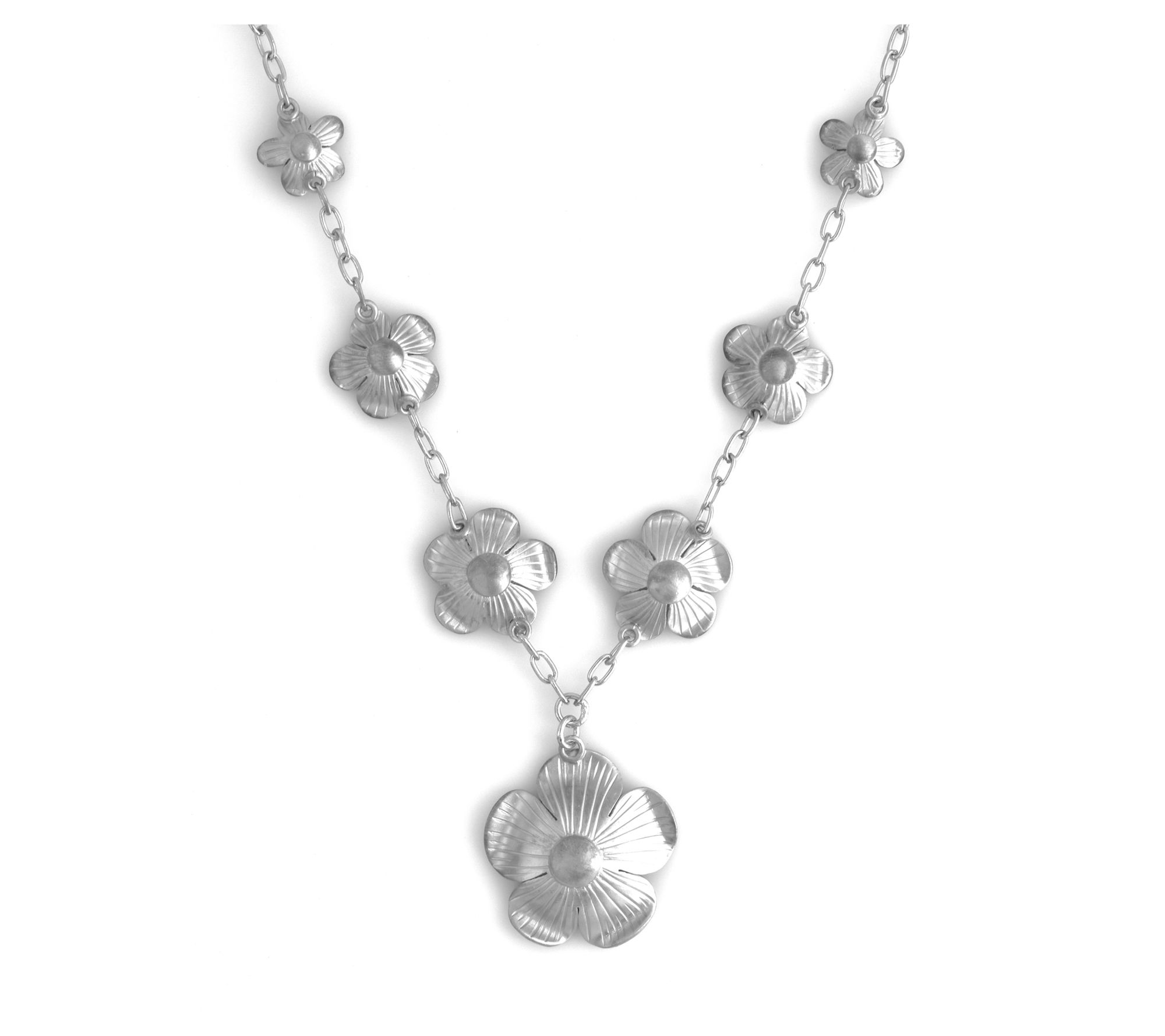 It's a floral affair! This delicate necklace is crafted in platinum-plated sterling silver and accented with stations of beautiful flowers to enhance your look with feminine charm. From Artisan Crafted.