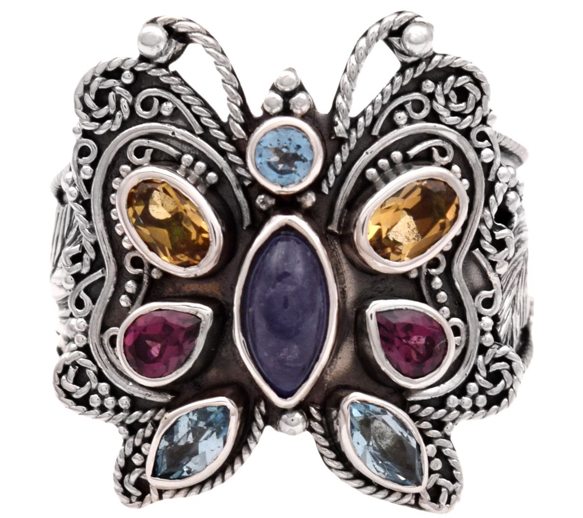 Artisan Crafted Sterling Silver Multi-GemstoneButterfly Ring