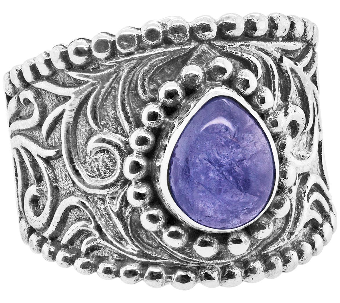 Upgrade your jewelry collection with this artisan-crafted sterling silver tanzanite ring. Featuring a bold wide design, intricate details, and a stunning gemstone, it commands attention every time you wear it. From Robert Manse Designs.