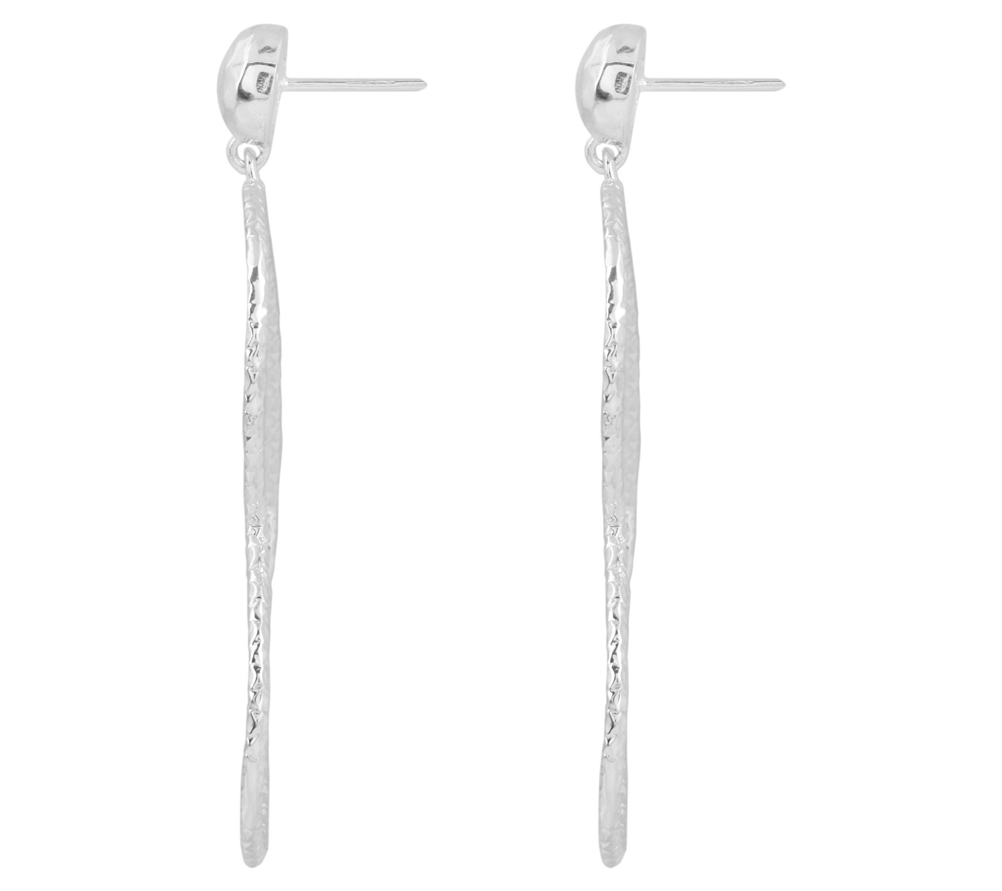Add a touch of romance and elegance to your look with these sterling silver textured heart earrings. Their artisanal design and dangle style make them a lovely accessory for any occasion. From Artisan Crafted.