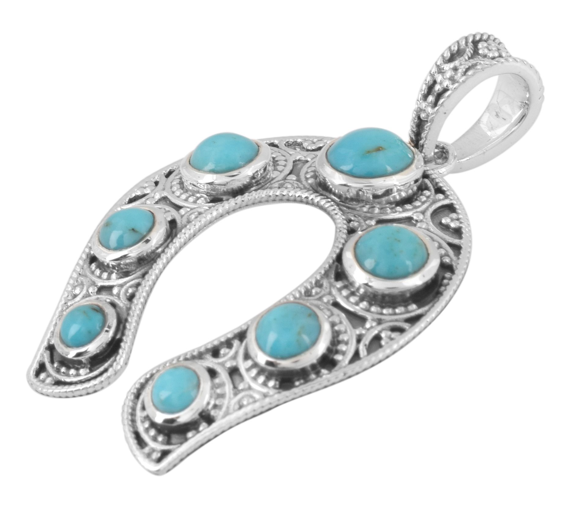 Artisan Crafted Sterling Silver Turquoise Horseshoe Pendant