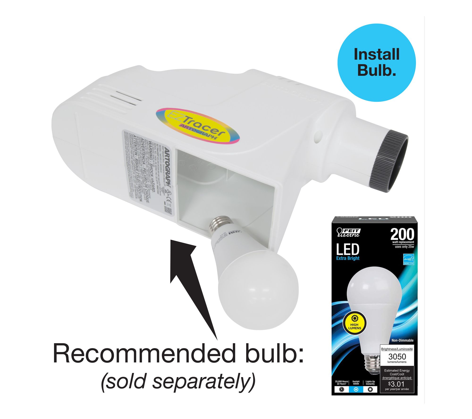 • Requires 23W CFL or 15W LED bulb, not included