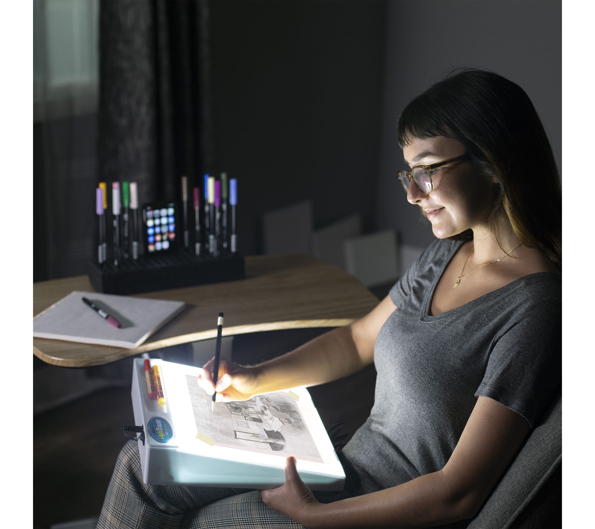 Traced lines become works of art with this LightTracer LED lightbox -- designed for artists, crafters, and creators who want an easy, comfortable way to illuminate their creativity. Its angled surface and integrated tool tray make every drawing session more enjoyable, while cool LEDs provide a bright workspace for everything from sketching to quilting. From Artograph.