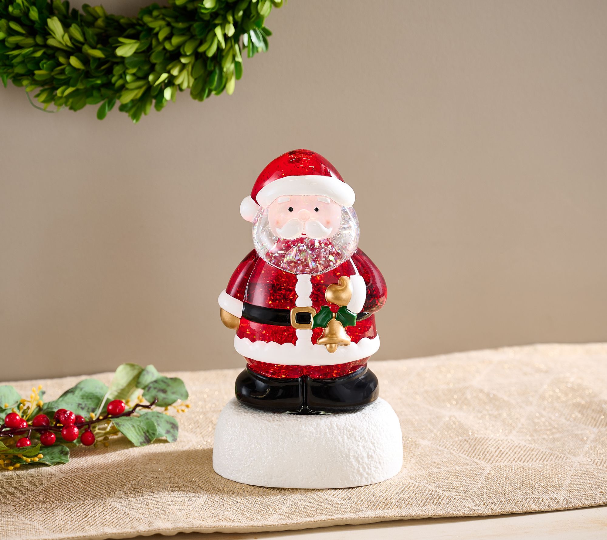 Hello, festive fellow! Illuminated with a soft glow and captivating with swirling glitter, this sweet holiday figure brings on the cheer! A four-hour timer means it conveniently turns on and off at the same time each day. From the Valerie Parr Hill Collection.
