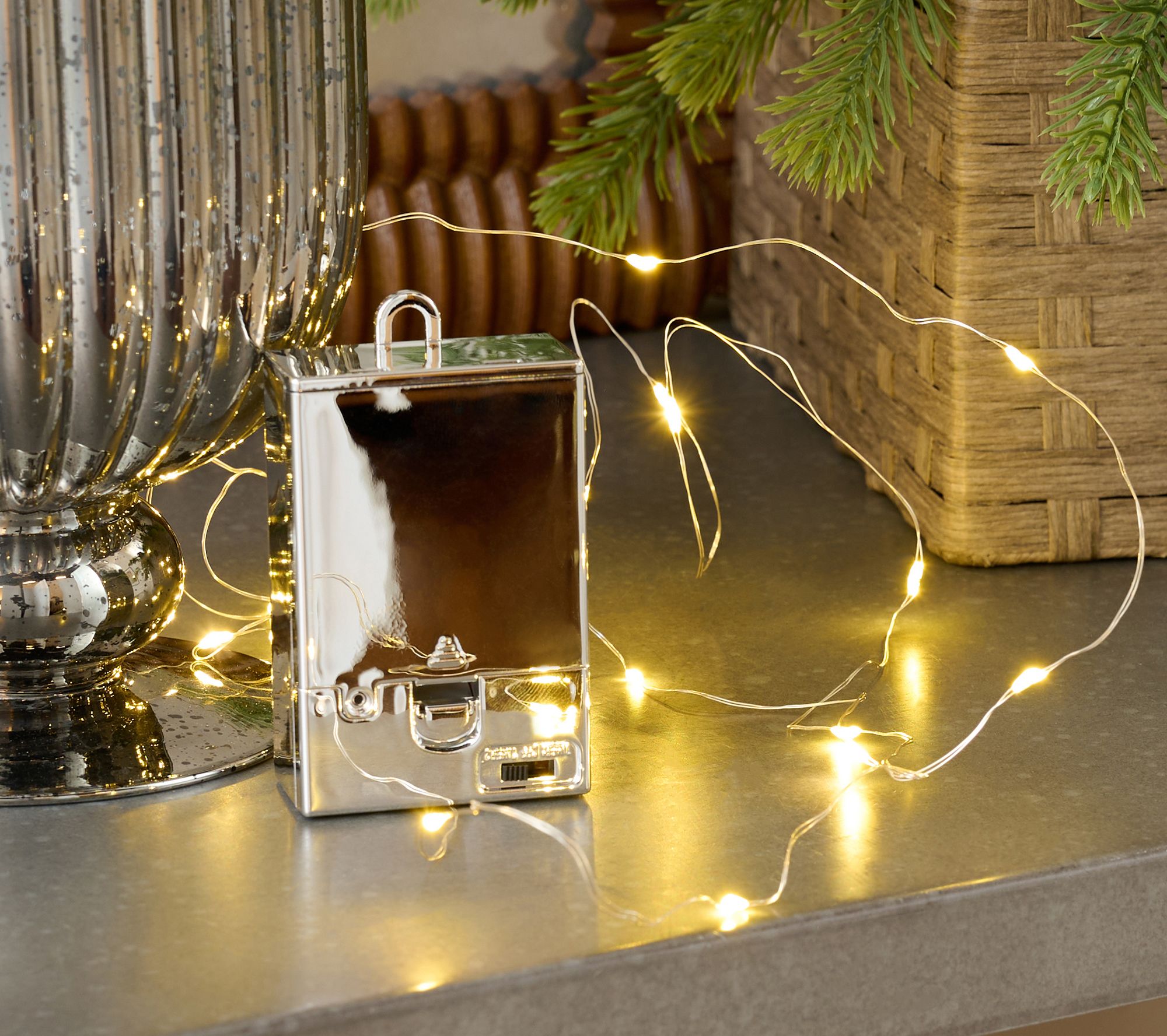 • Light strand: six-hour on-18-hour off timer function; steady on and twinkle modes
