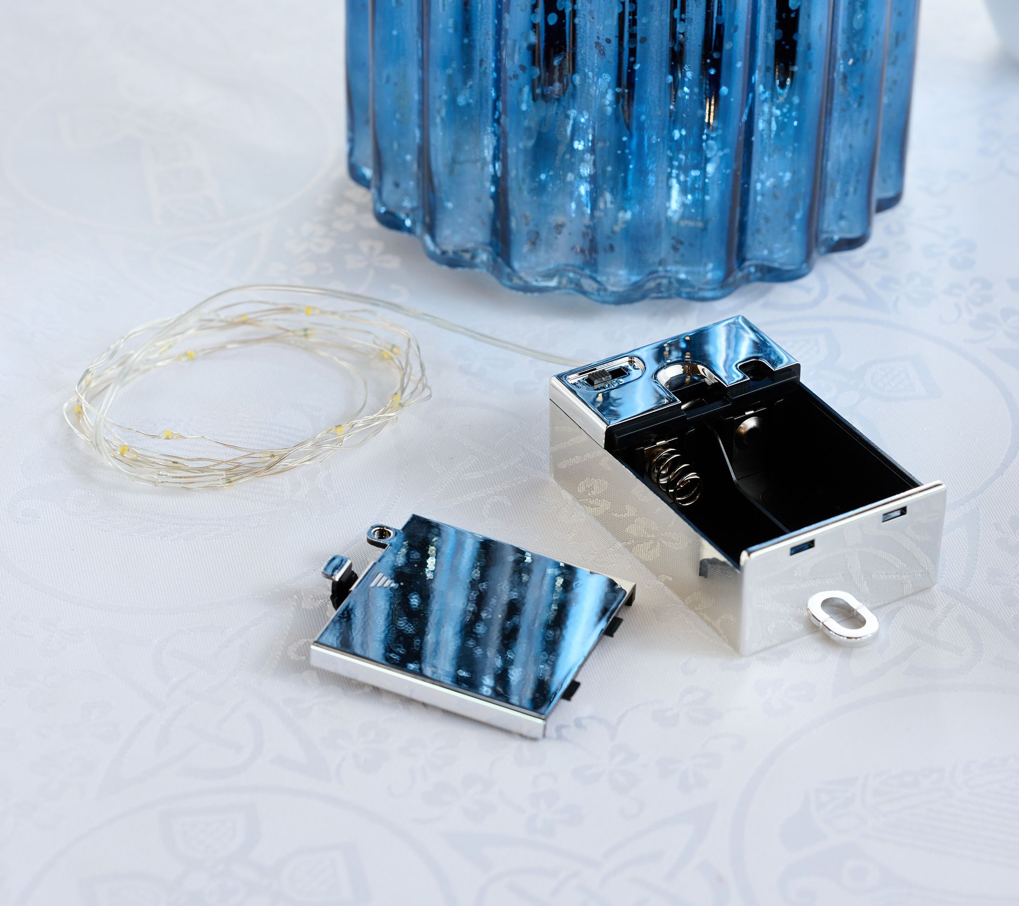 • Includes mercury glass hurricane and removable 20-microlight strand