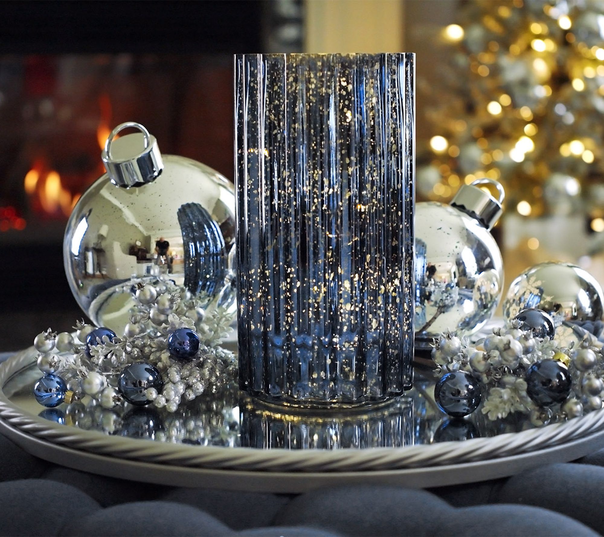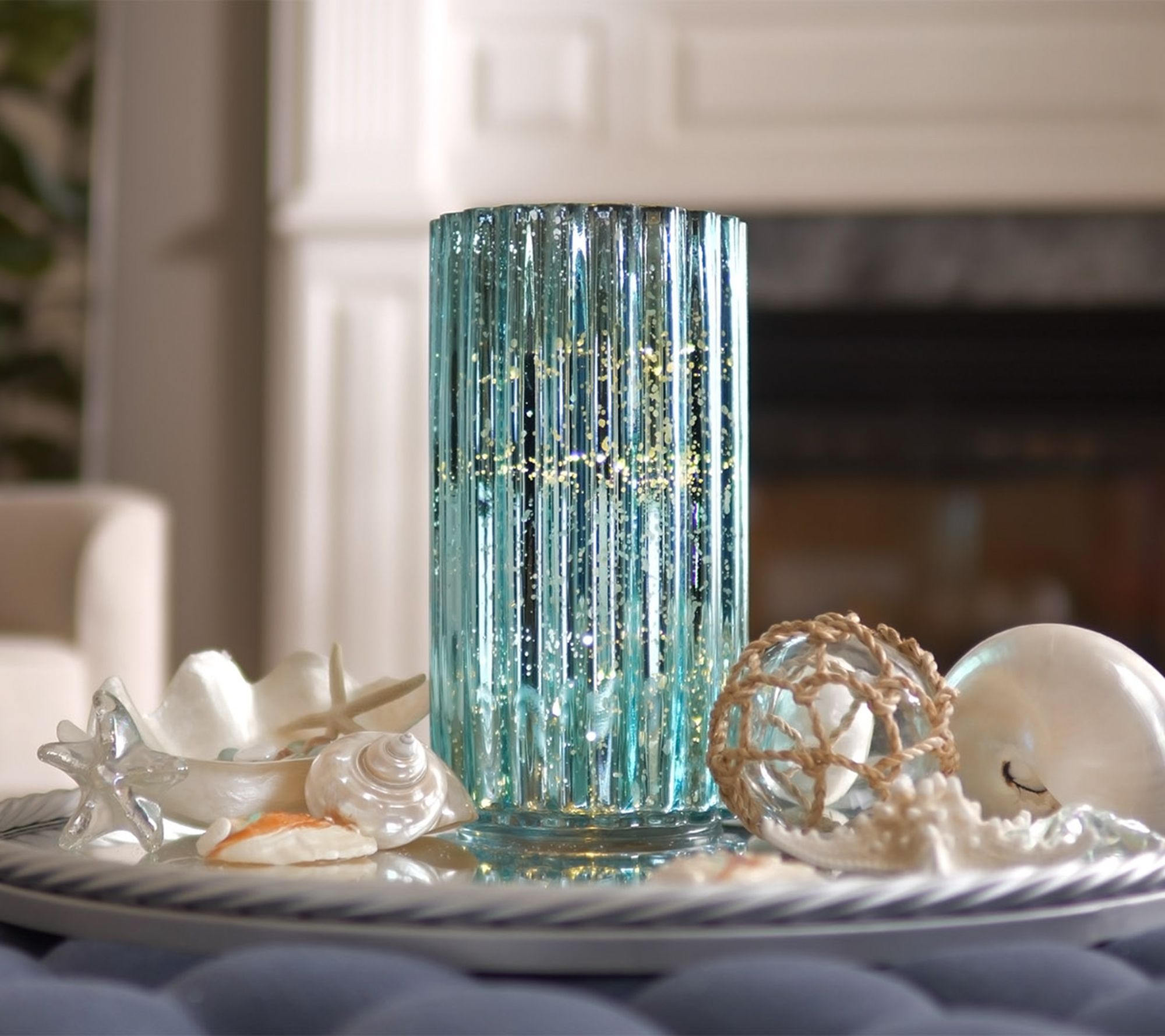 What's hot in home decor? Illumination! So get glowing on the dazzle with this oversized hurricane from Valerie Parr Hill. The mercury glass design's fluted exterior and high-shine interior catch and reflect light in a captivating way. What's more, the timer feature puts ambience on auto-pilot -- you can set it to twinkle or steady and forget it.