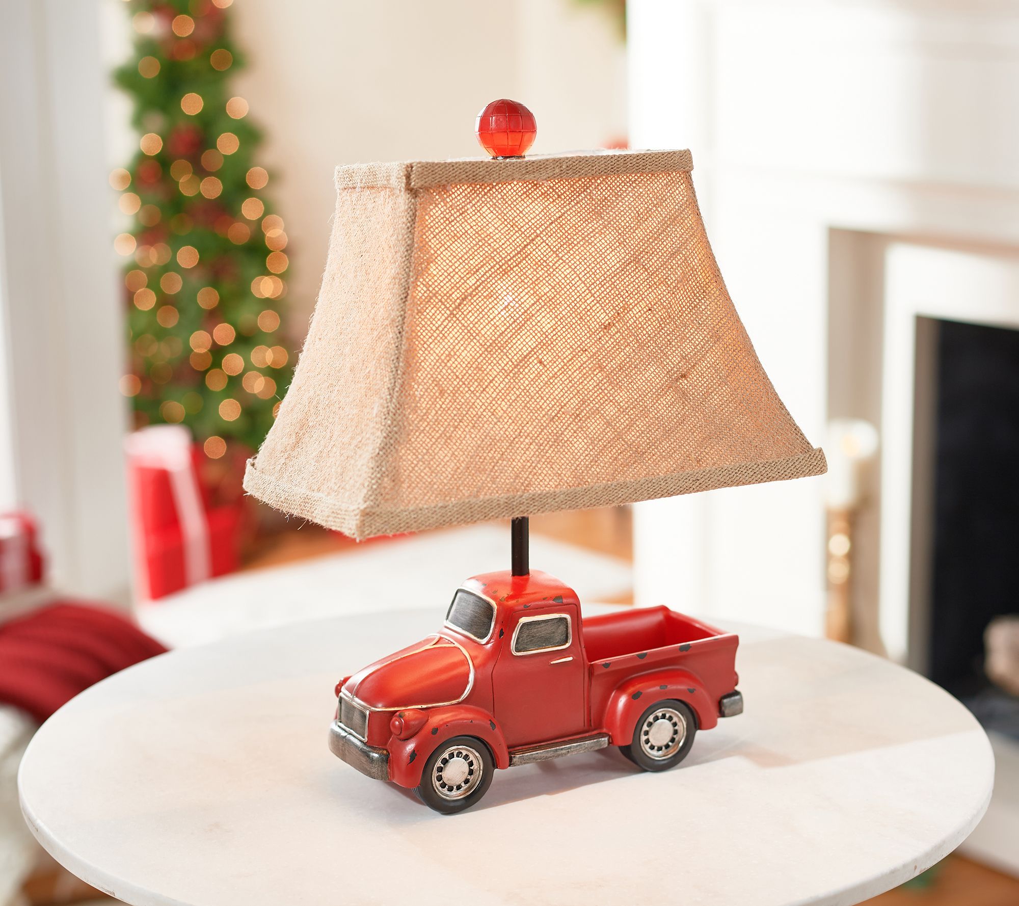 Well, that's just about the most adorable lamp we've ever seen! A festive red truck adds a pop of color (and fun!) to your holiday home. From the Valerie Parr Hill Collection.