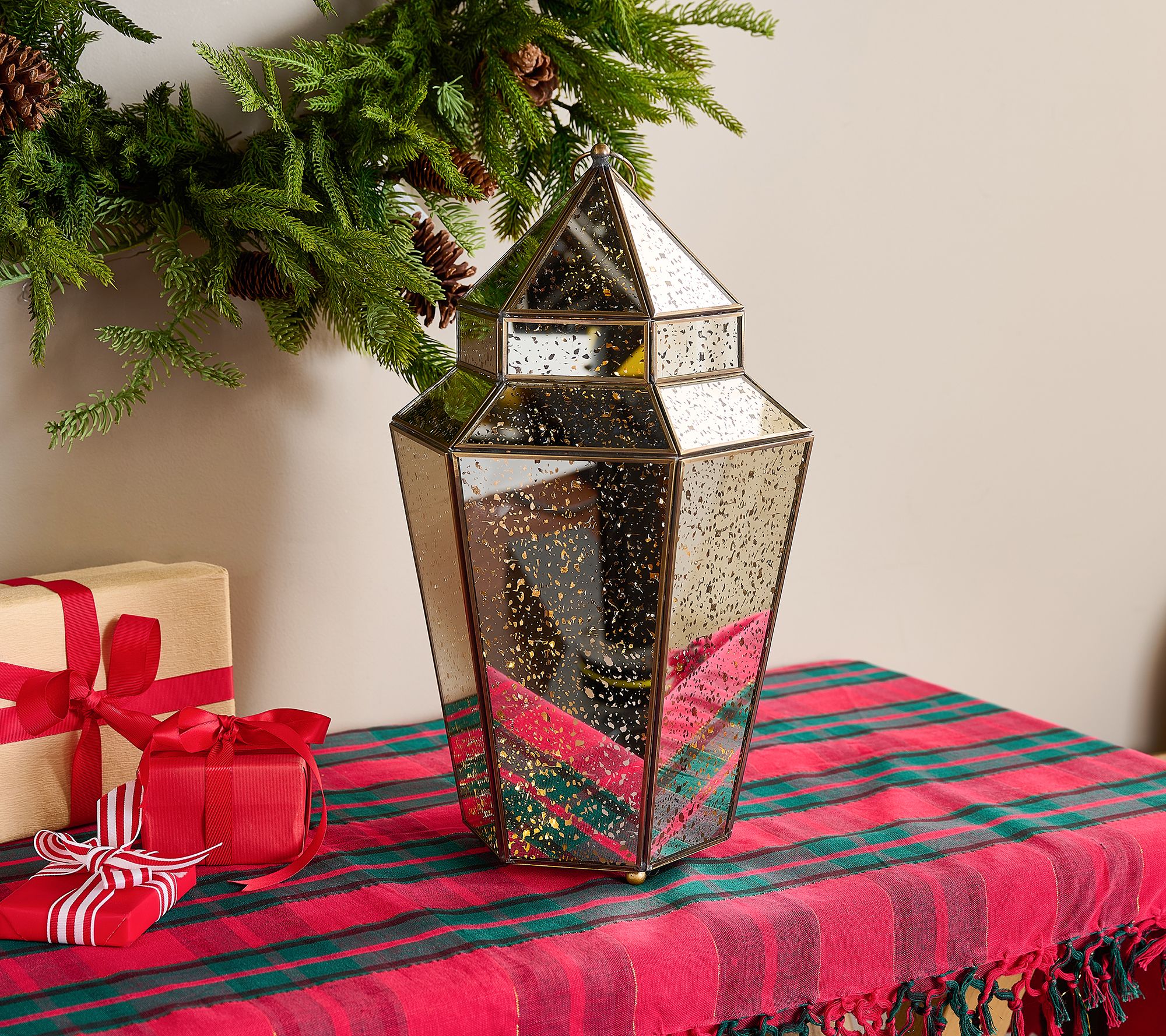 "As Is" 18" Oversized Illuminated Mercury Glass Lantern