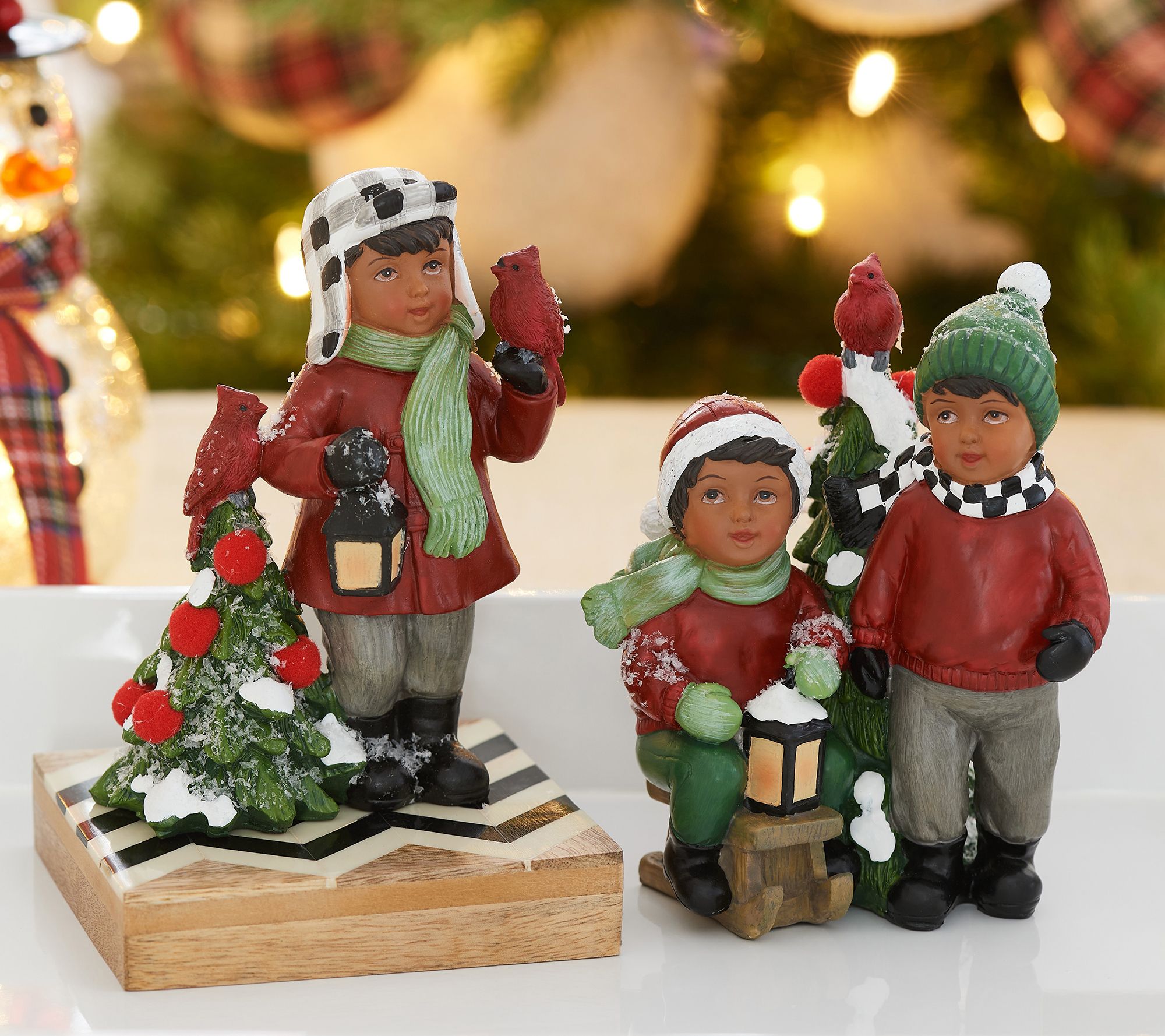 Create a merry mood in your home with this two-piece set of three adorable children dressed in their holiday best. From the Valerie Parr Hill Collection.
