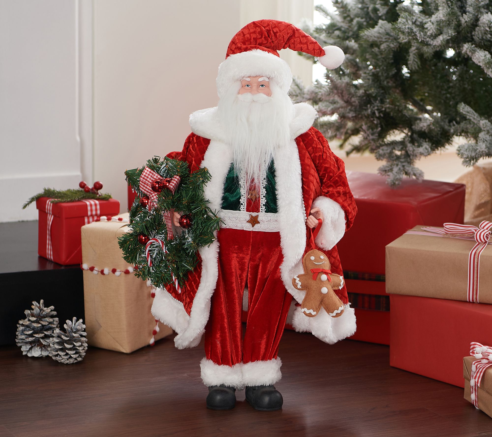 "As Is" 20" Gingerbread Santa Claus with Wreath by Valerie