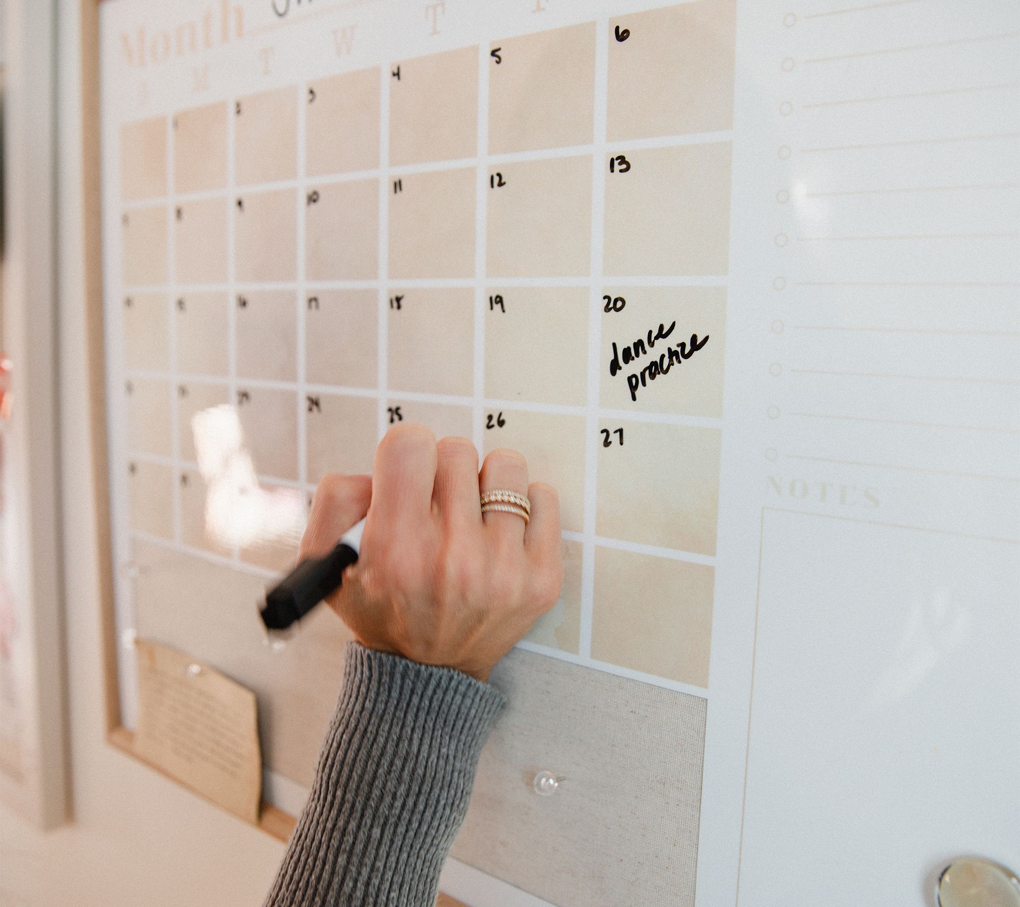 Get organized and stay on schedule with this monthly wall calendar. It comes with push pins, magnets, and a marker, with space to write notes and keep track of your daily tasks. From Lauren McBride.