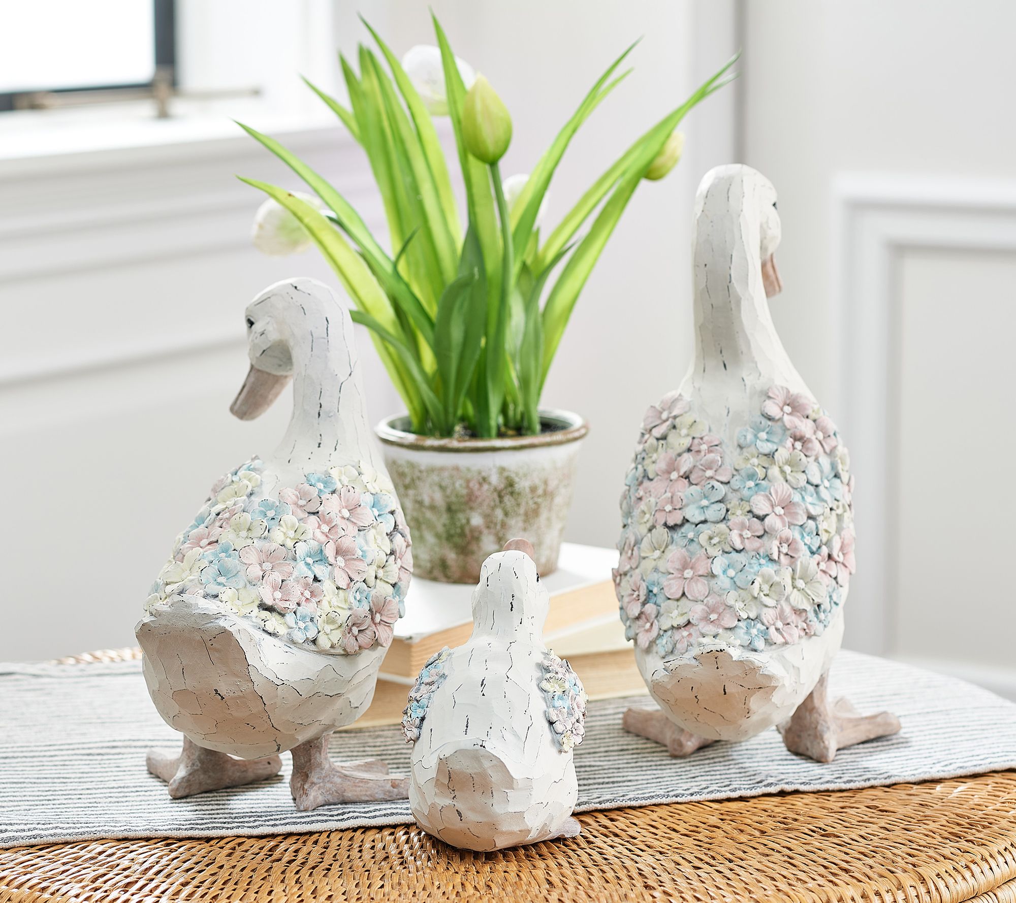 "As Is" 3-Piece Duck Family with Floral Accent by Valerie