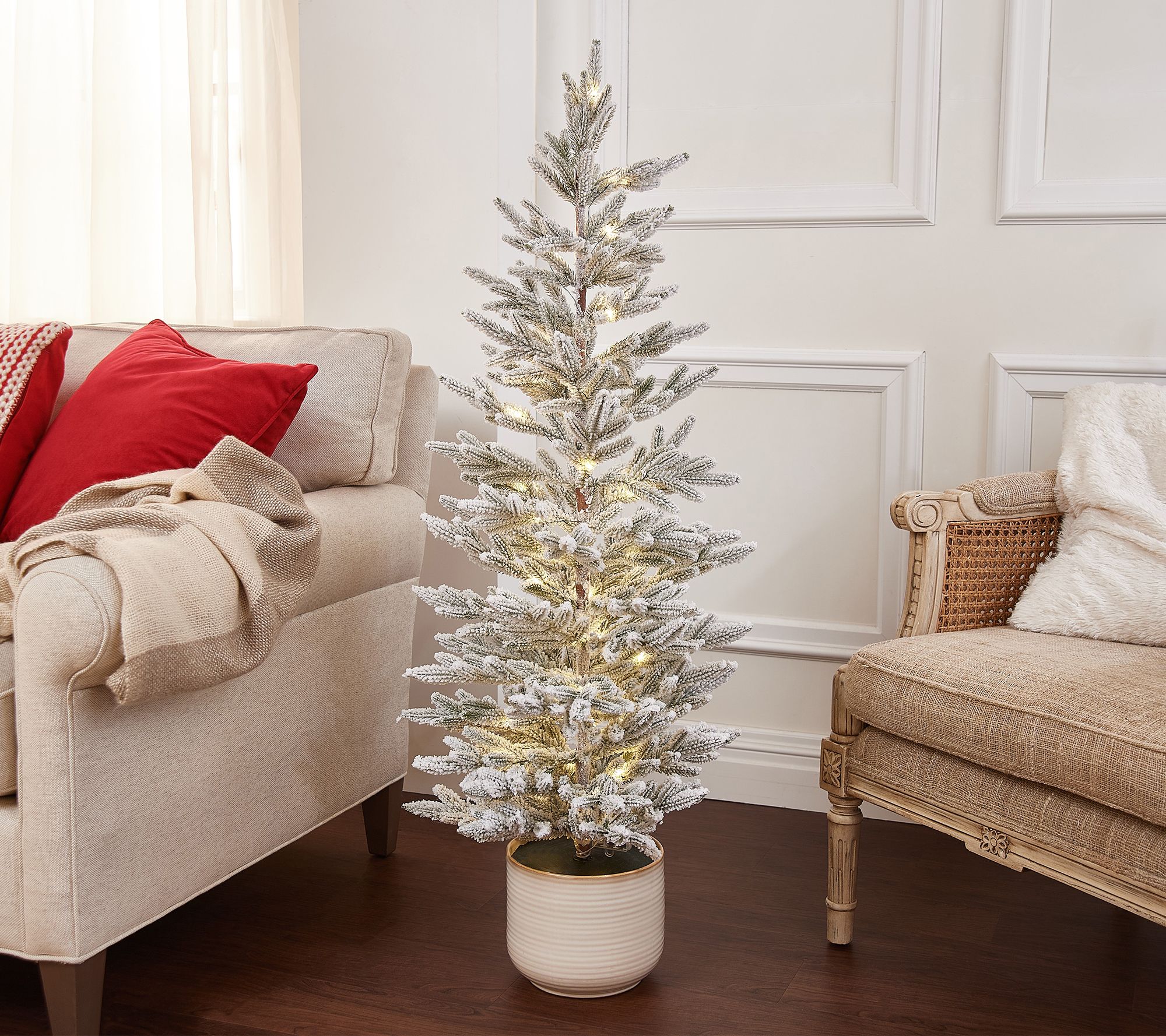 "As Is" 4' Illuminated Flocked Tree in Ceramic Pot by Lauren McBride
