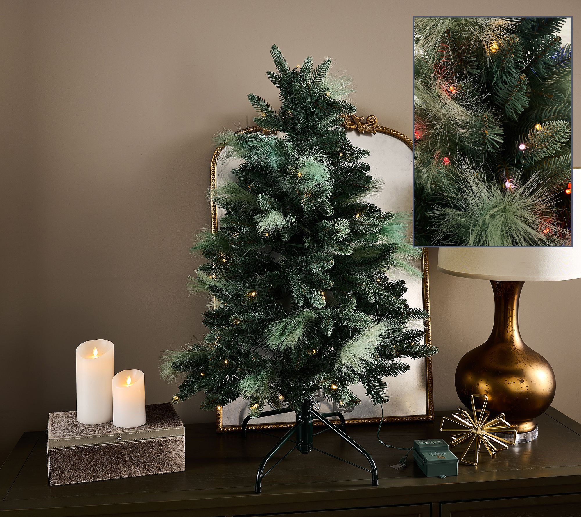 Feather your holiday nest with this illuminated 40" pampas tree. Soft, floaty branches contrast with sturdy evergreen boughs as LED flip lights provide customizable ambiance -- whether you're hosting friends or setting the scene for a quiet evening. The easy-to-use remote and timer settings make it effortless to create cozy moments indoors or out. From Kim Gravel.
