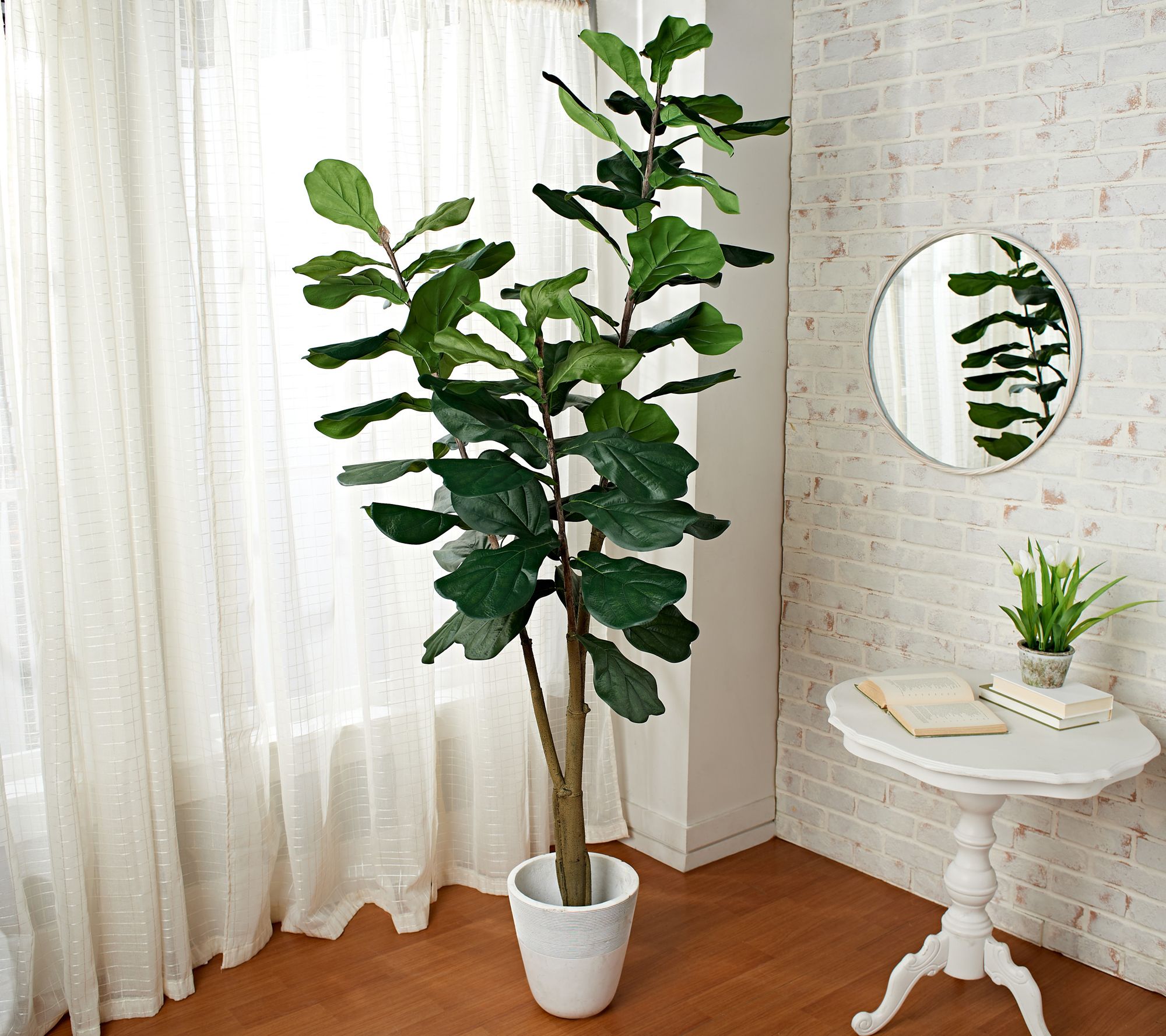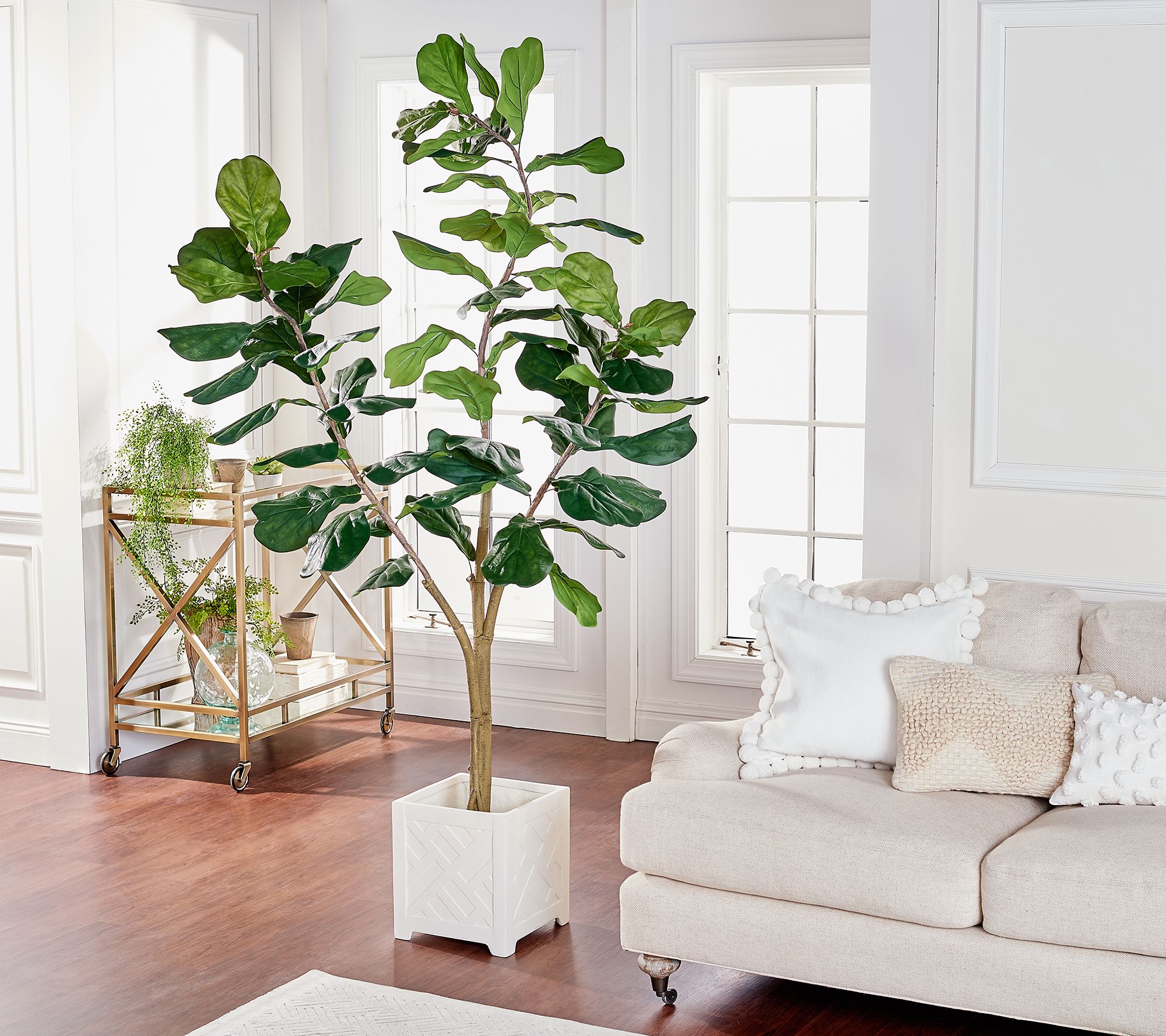 Gorgeous in green, this potted fiddle leaf tree by Valerie Parr Hill brings the look of nature into your home. The tree's large leaves are a lovely accent, while its small weighted base lets you place it inside a decorative urn or planter of your choice. From the Valerie Parr Hill Collection.