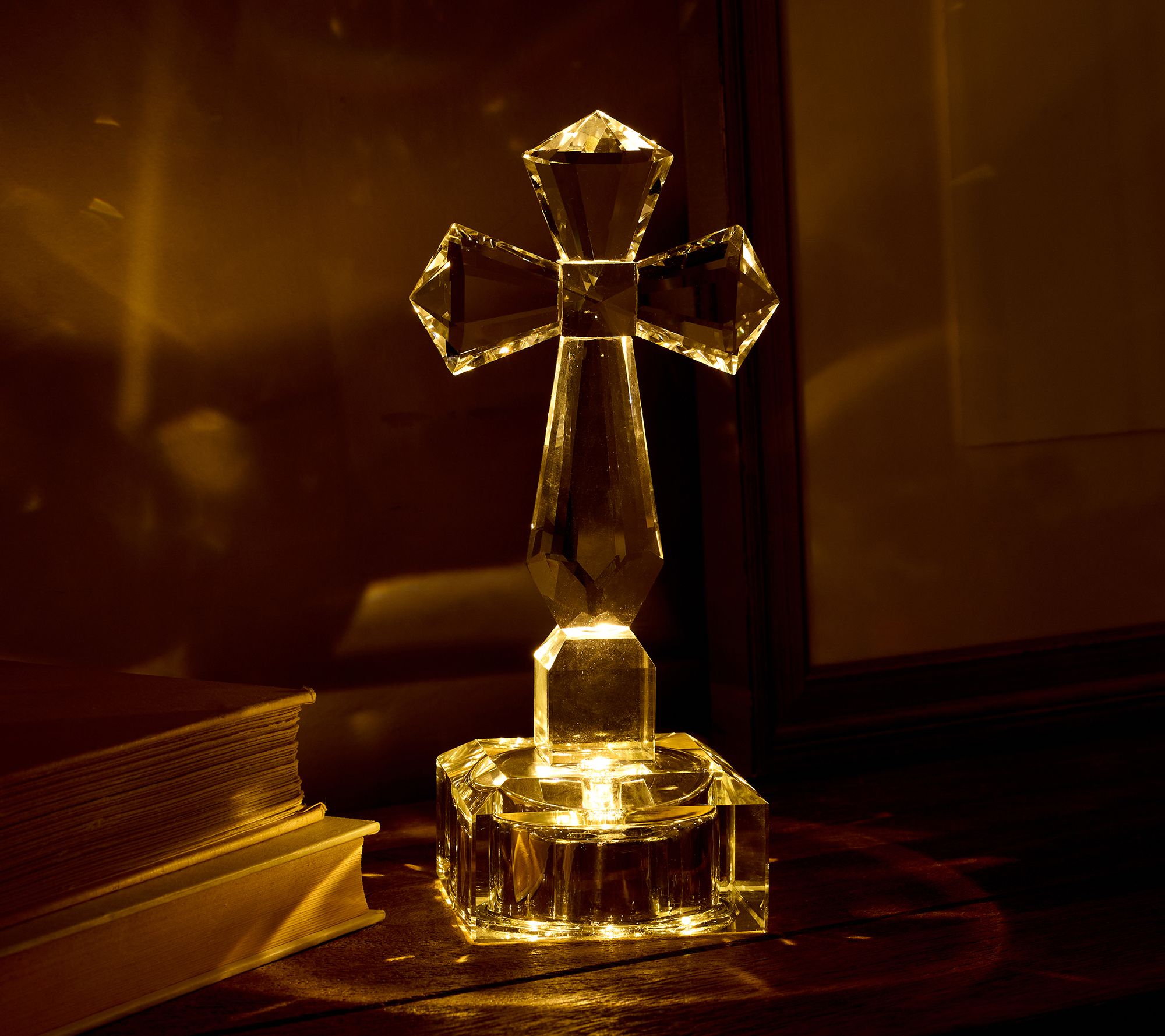 A sacred symbol crafted out of faceted glass, this cross illuminates from within to highlight your faith and give your home a heavenly glow from any angle. From the Valerie Parr Hill Collection.