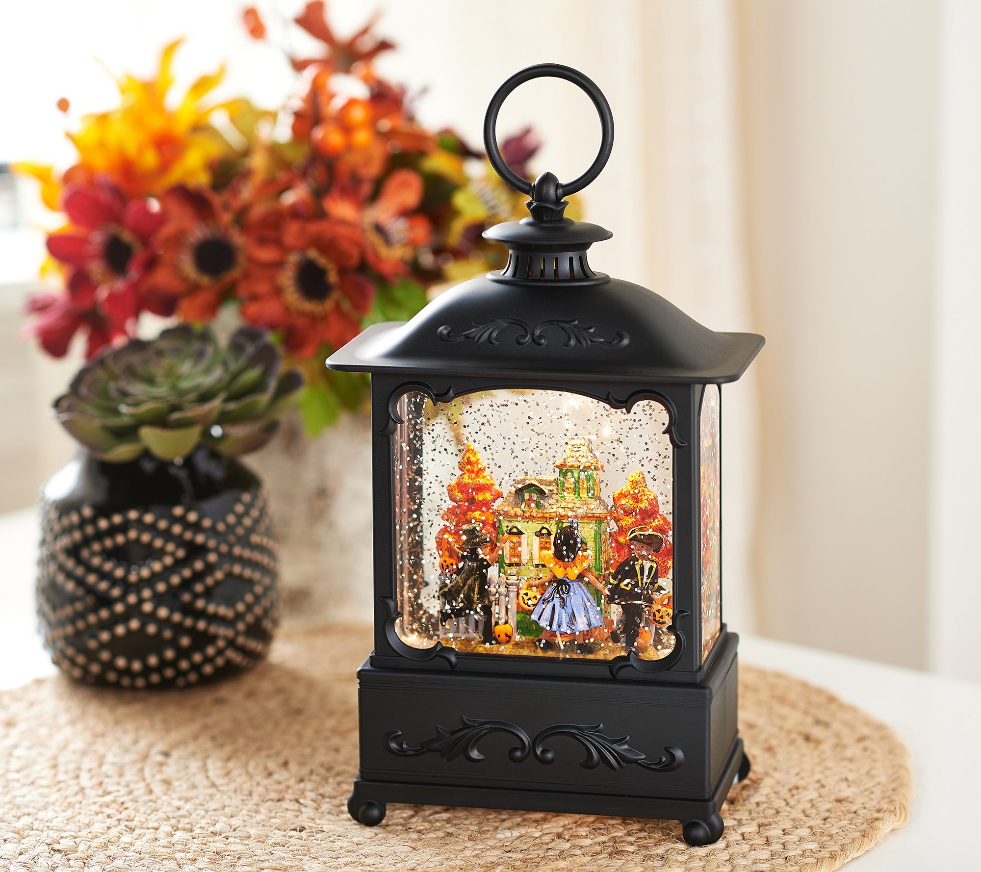 Cozy up to autumn with the mesmerizing, fluid-filled design of this harvest lantern that sets glitter into motion when illuminated. From the Valerie Parr Hill Collection.