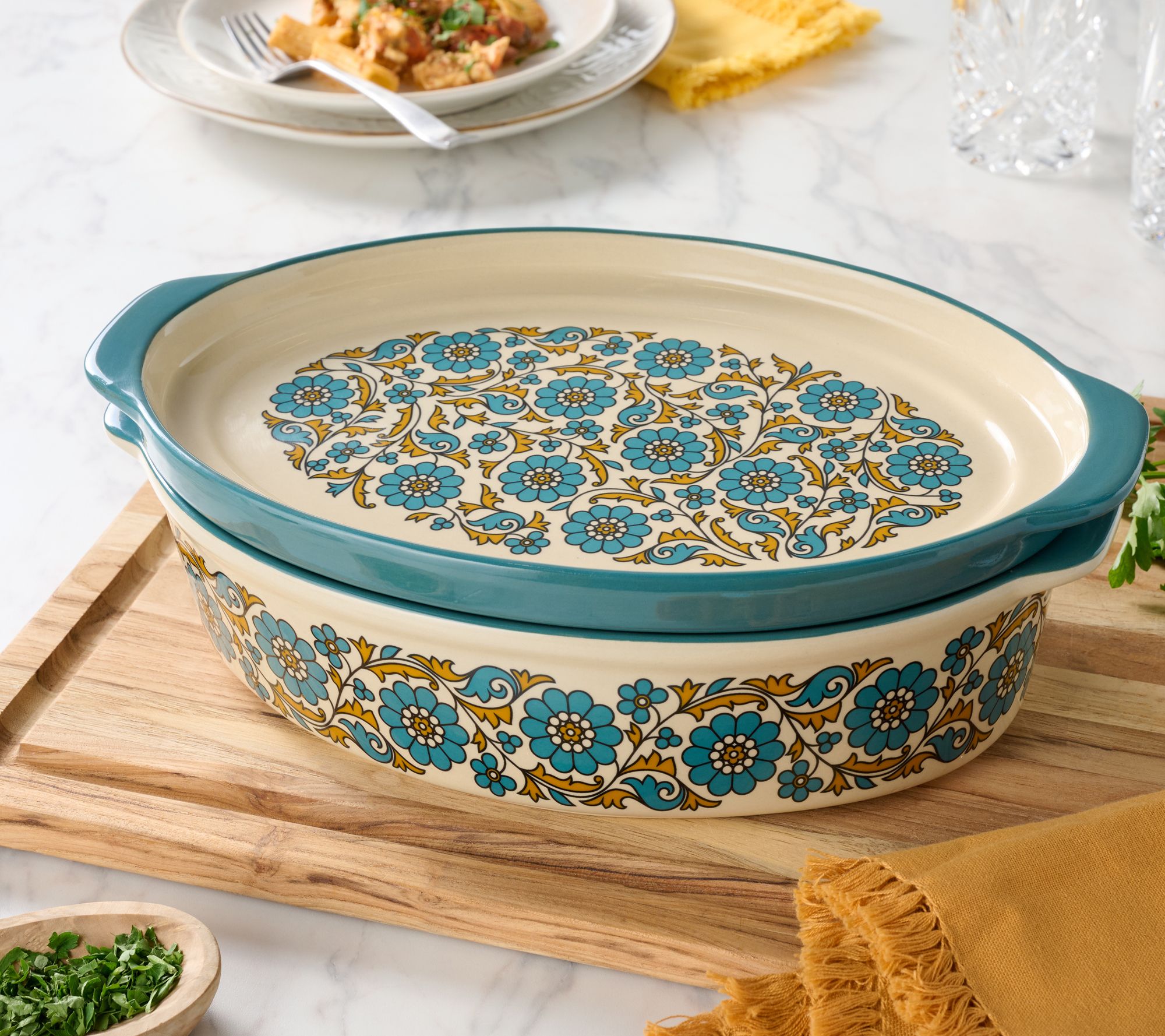 "As Is" Aarti Sequeira 2.6-qt Stoneware Oval Baker with Platter Lid