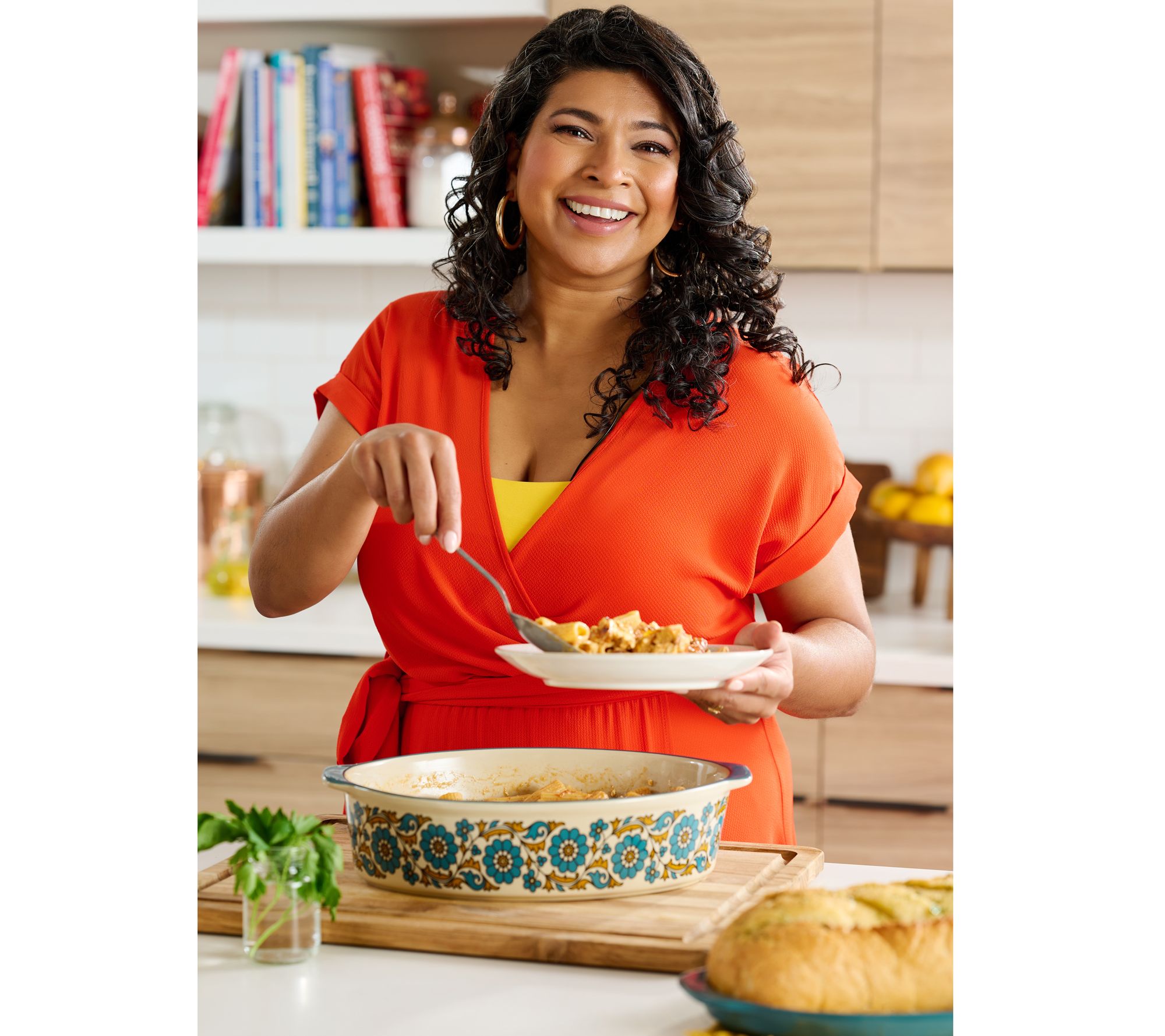 This oval baker is a timeless piece that's perfect for entertaining, with a pretty floral design ideal for oven-to-table serving. Make your famous chicken casserole or a tasty dessert and enjoy a family-style feast. From Aarti Sequeira.
