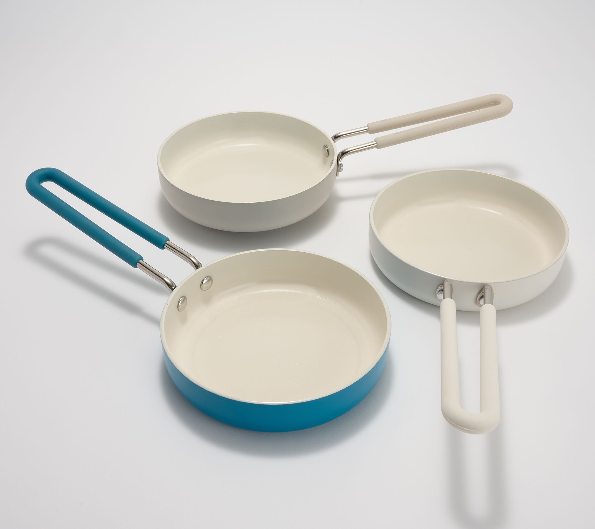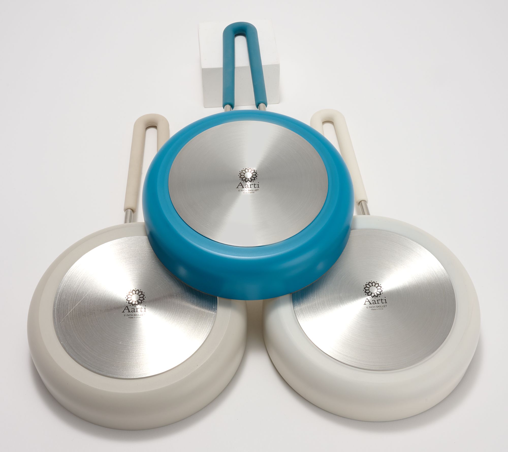 "As Is" Aarti Sequeira Set of (3) 6" Skillets with Silicone Handles