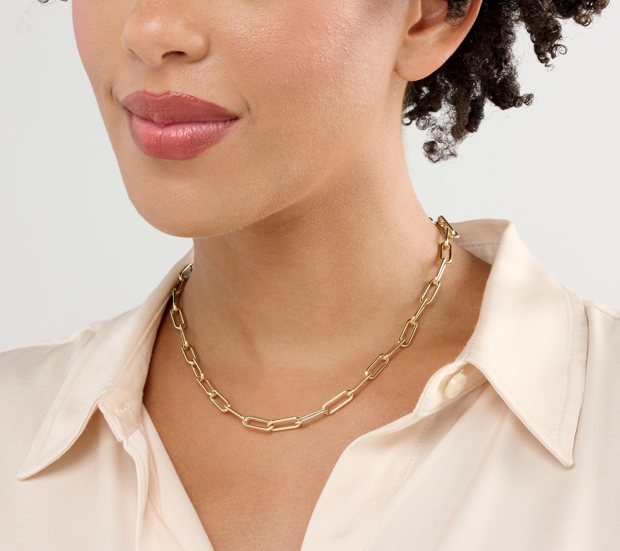 • Paperclip links; polished finish