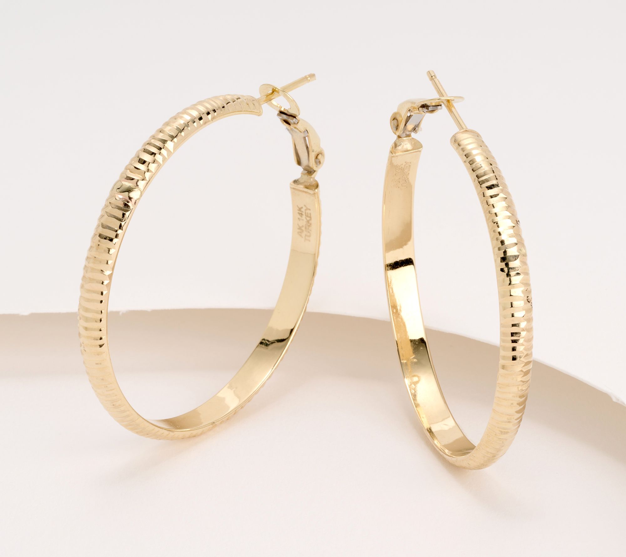 "As Is" Adorna Polished or Diamond Cut Omega Back 1.5" Hoops, 14K Gold