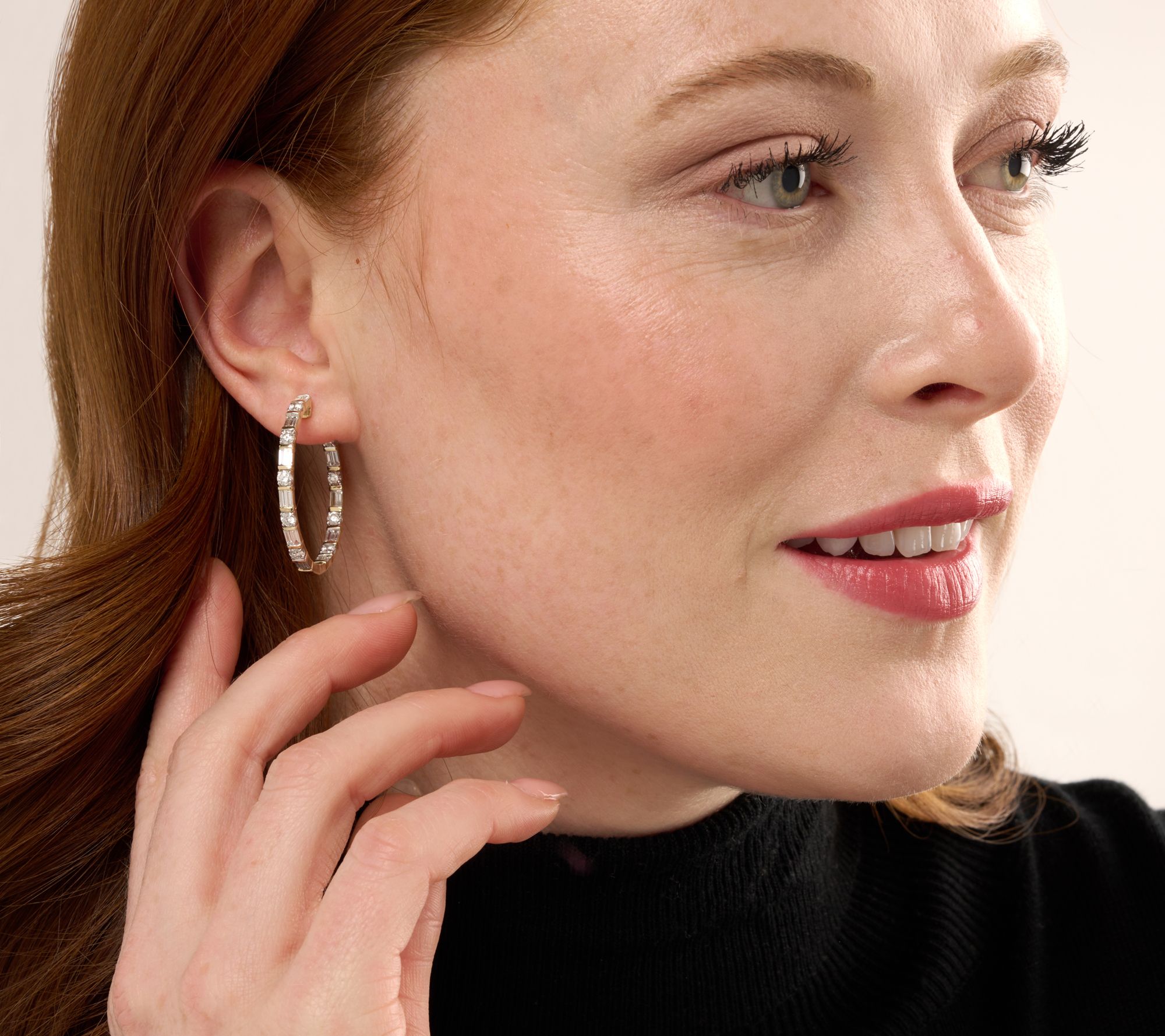 Hoops come and go, but you know what they say about diamonds! Wear these future-proofed earrings, flush with round diamonds and diamond baguettes, forever and always. From Affinity® Diamond Jewelry.