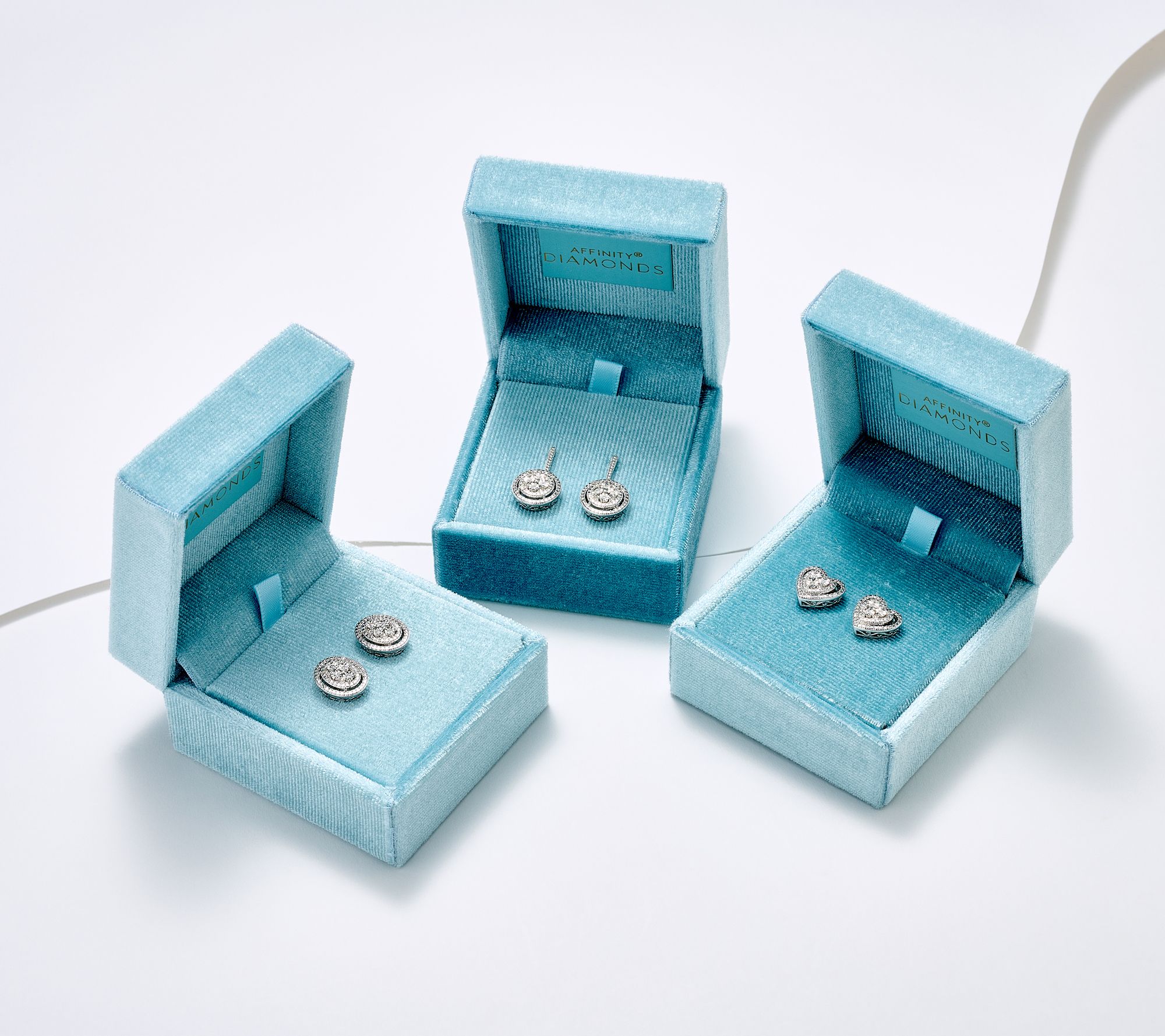 These fabulous boxed earrings shine with stunning diamond sparkle. With three pairs to choose from, there's always a style to match your mood. Break them up into three gifts, gift them all to one special person, or keep them as a gift-to-self -- the options are endless (and always eye-catching). From Affinity® Diamonds.