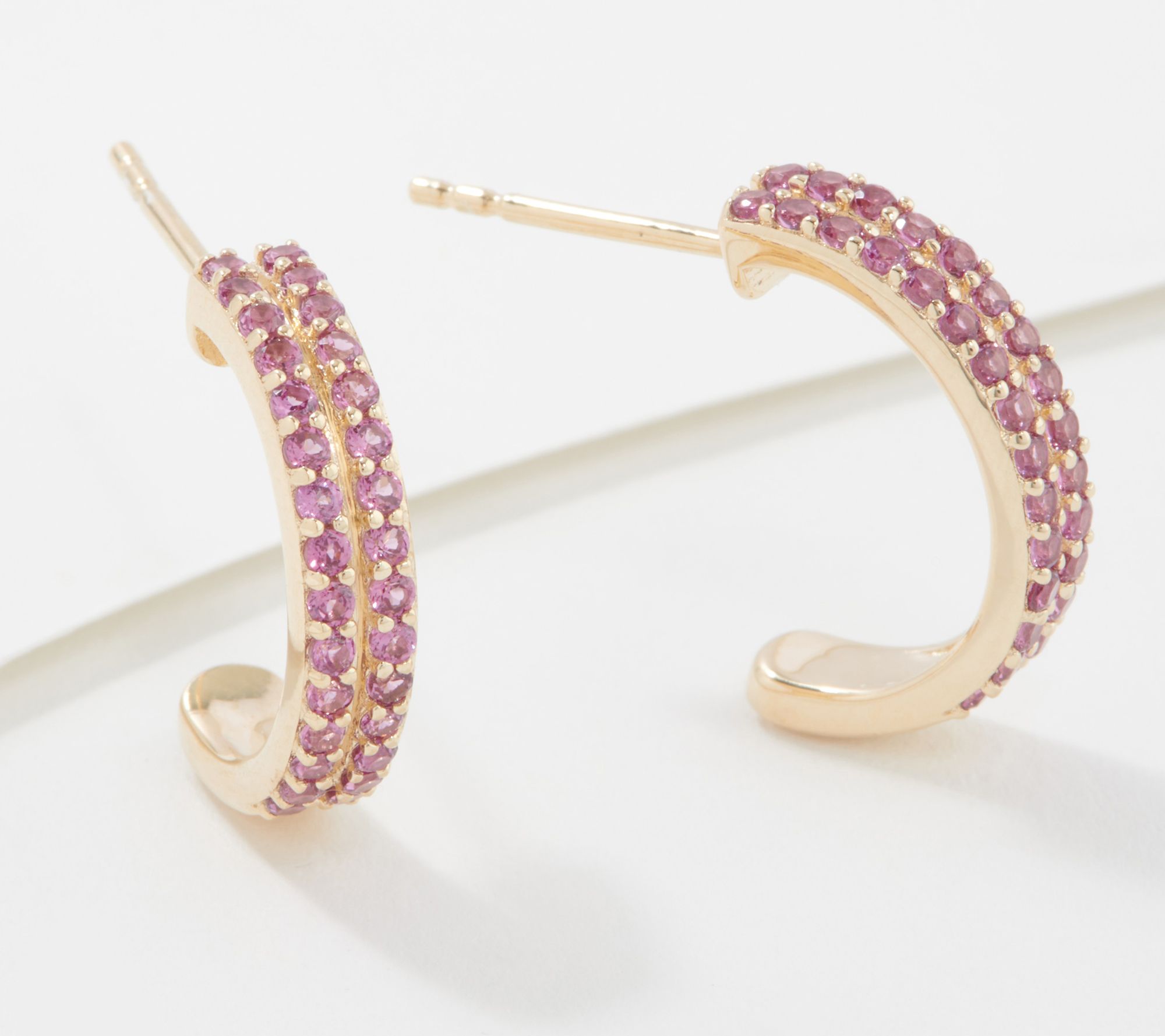 • Two rows of prong-set round gemstones on front of hoop design