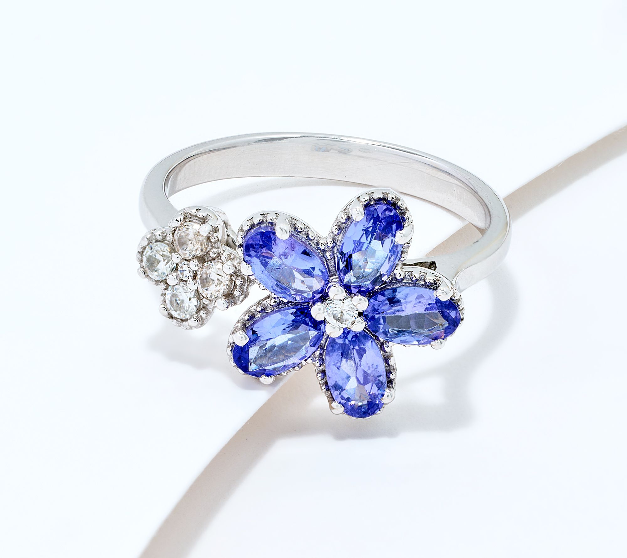 "As Is" Affinity Tanzanite Flower Ring, Sterling Silver