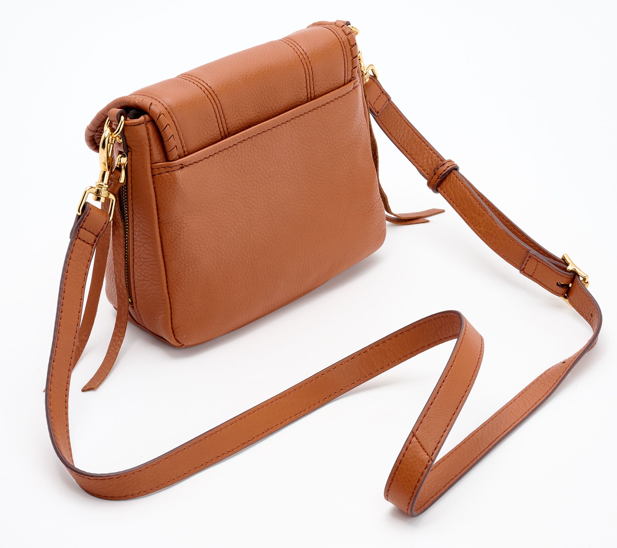 • Flap entry with magnetic snap closure, adjustable/removable crossbody strap, back slip pocket, two zipper pockets in gusset