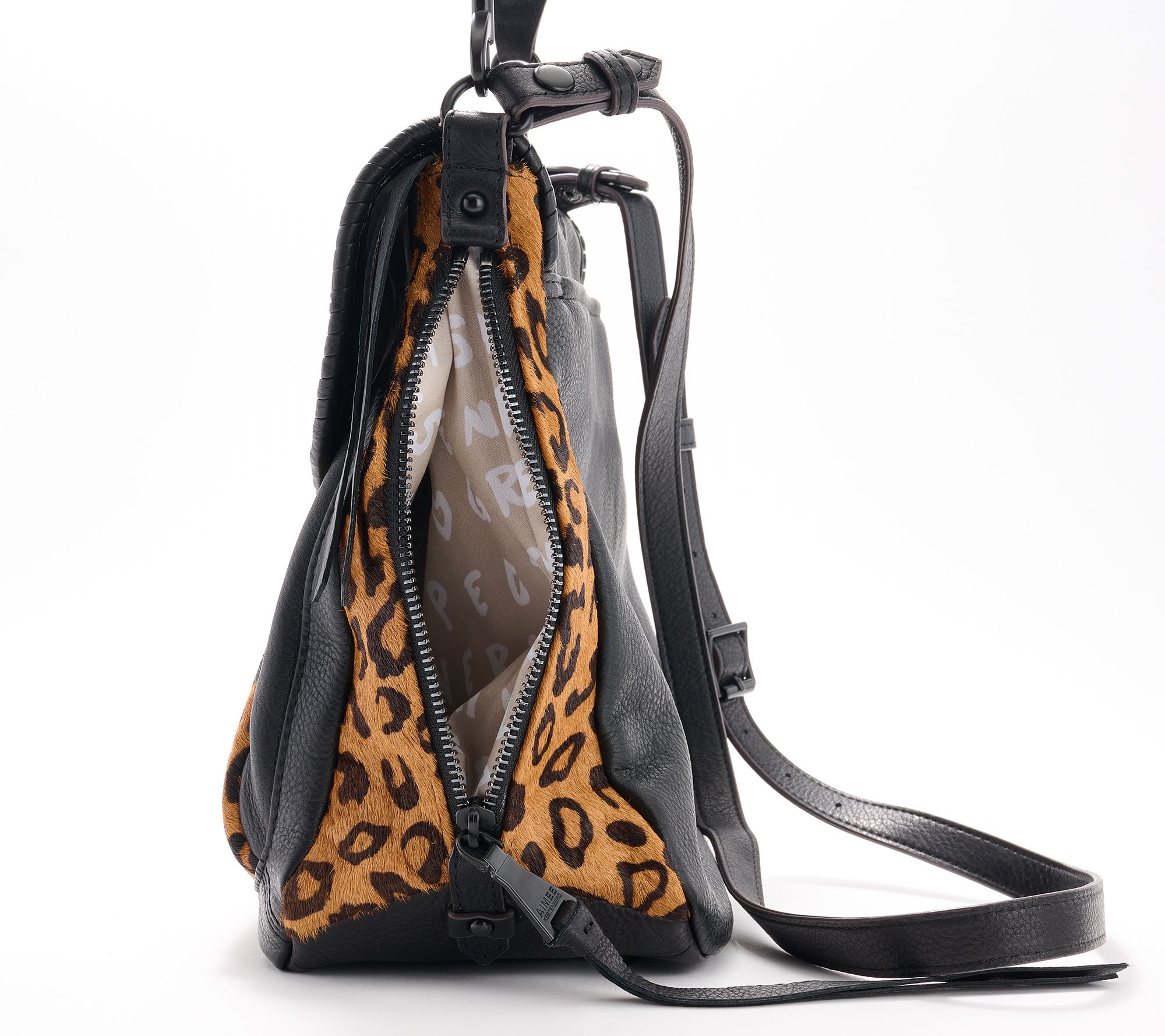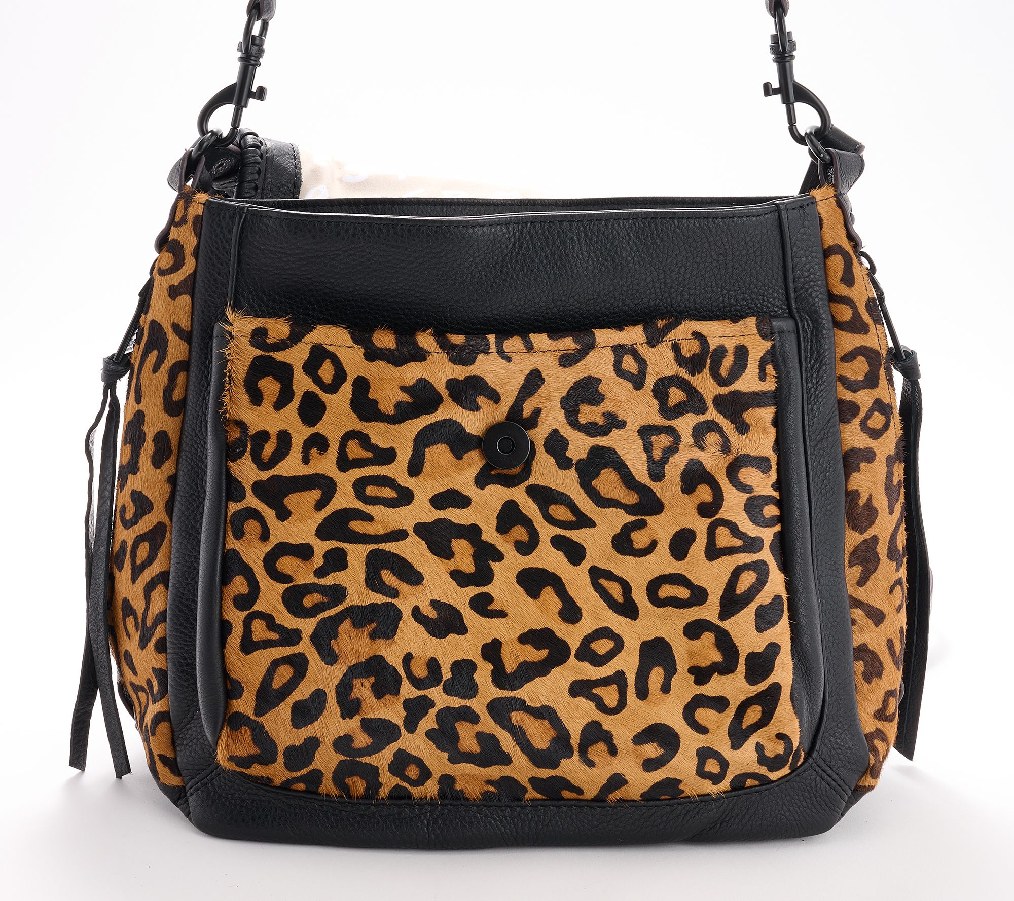 • Magnetic snap and zipper at main entry, front pocket under flap, two zip pockets at side, back slip pocket with magnetic closure, adjustable/removable crossbody strap, removable shoulder strap