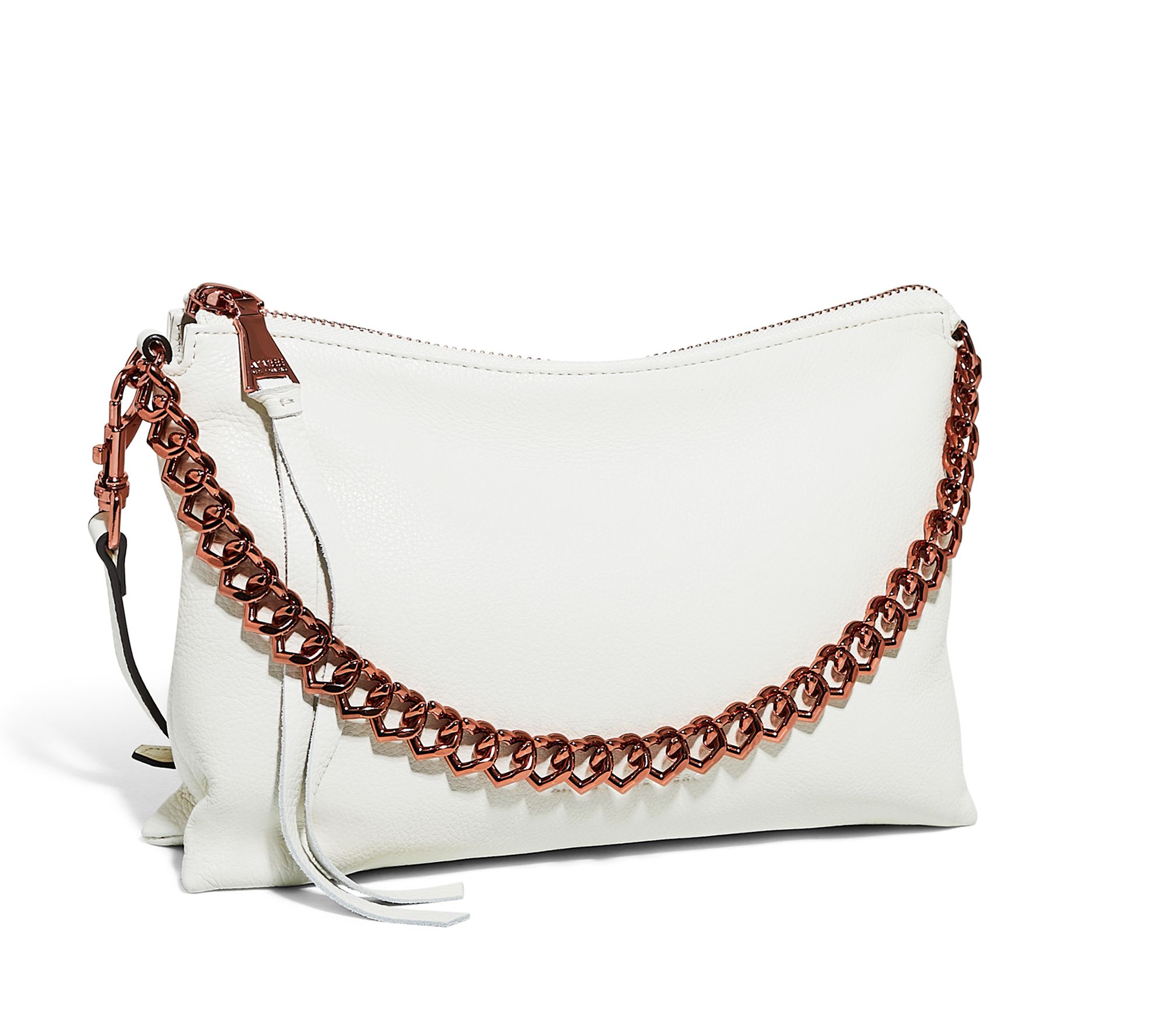 This covetable carry does more than just hold your phone and lip gloss -- it also makes a trend statement (close-up on the heart link chain)! From Aimee Kestenberg.