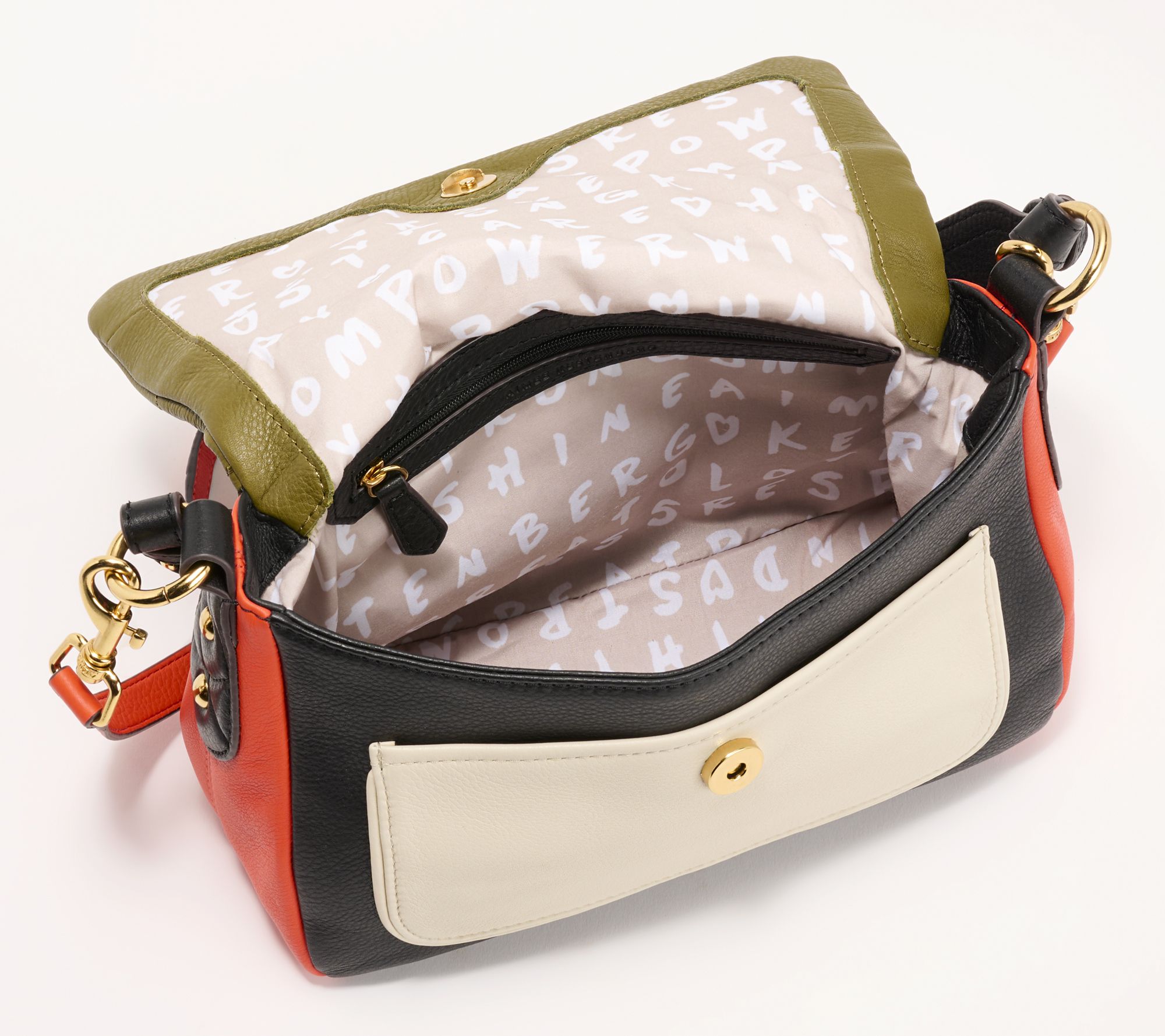 • Lined interior, slip pocket, zip pocket